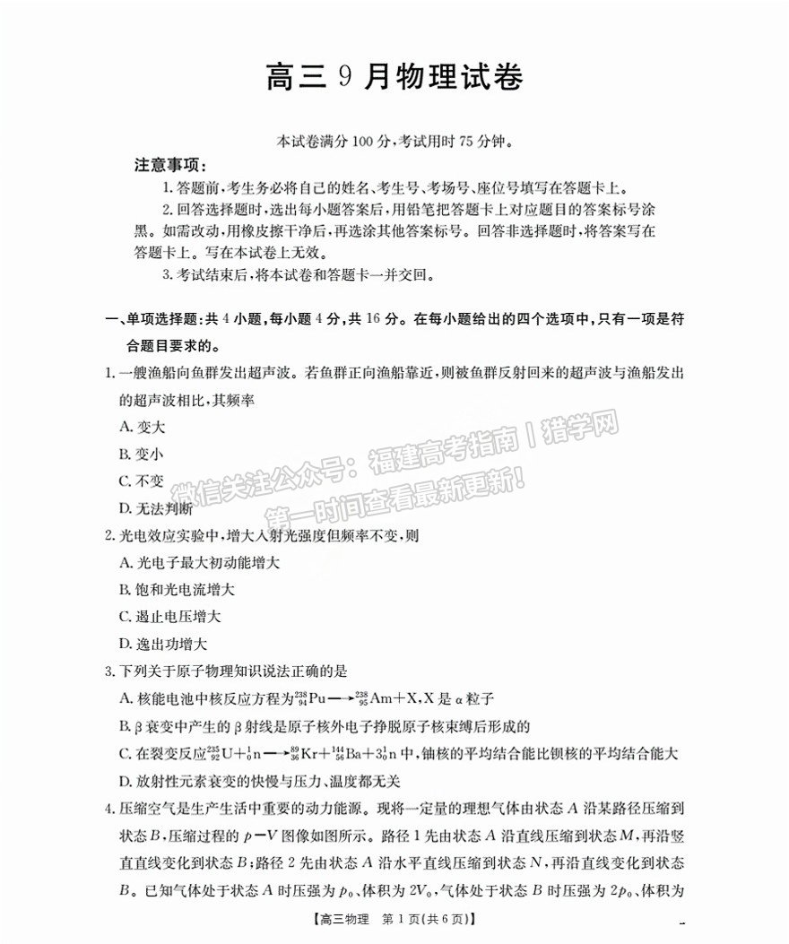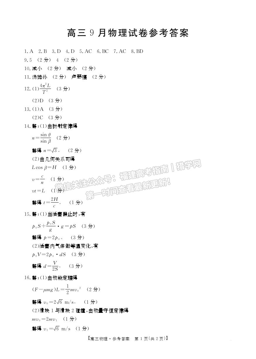 关注微信公众号:福建高考指南丨猎学网,查看最新高三考试答案!还有海量历年真题等着你!