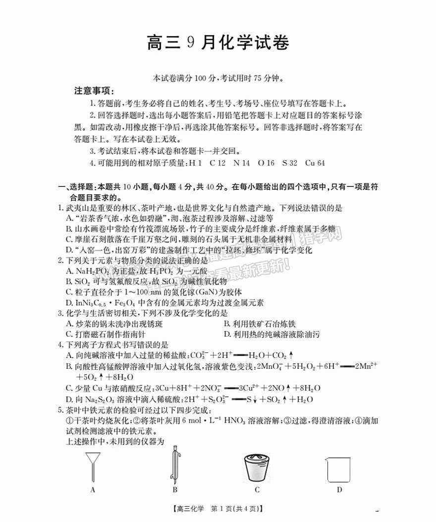 当前位置: 首页 > 复习备考 > 模拟试题 > 理综 > 金太阳·福建省2026届高三9月开学联考(26-17C)化学试卷及答案