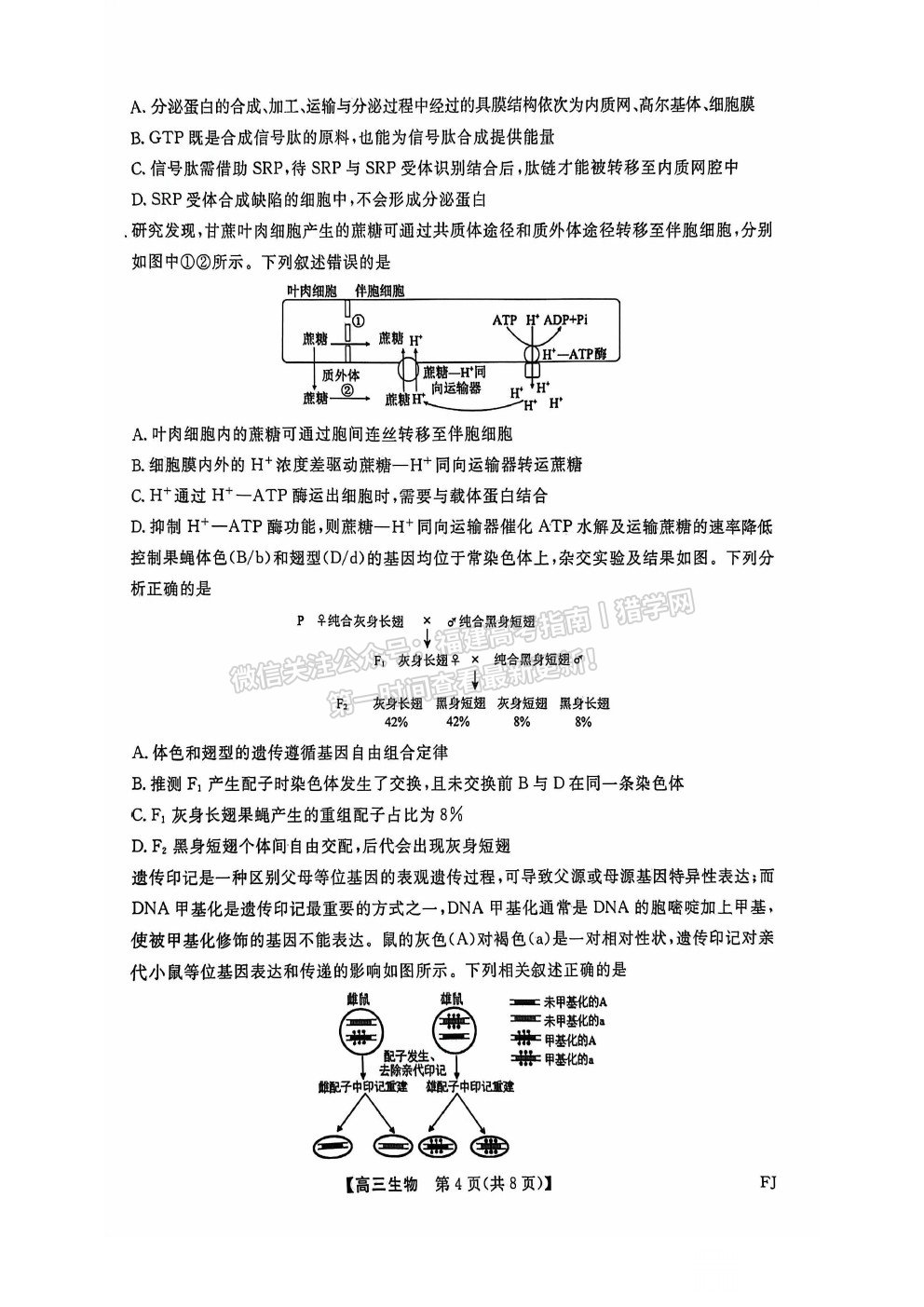 当前位置: 首页 > 复习备考 > 模拟试题 > 理综 > 2026福建百校11月期中考生物试题及答案