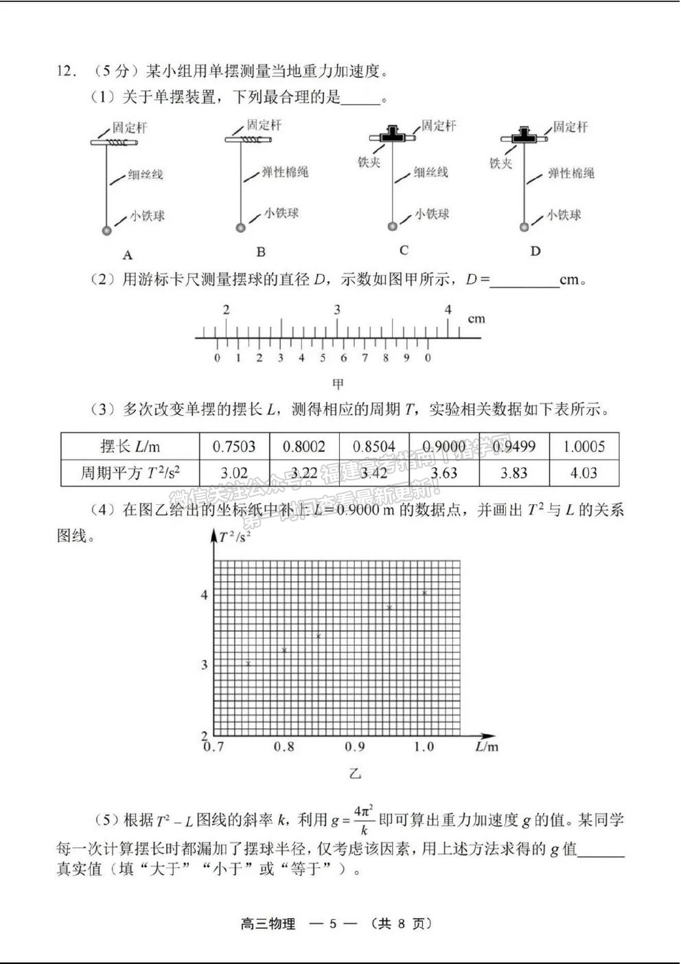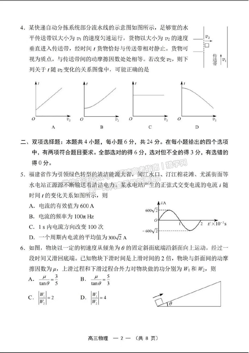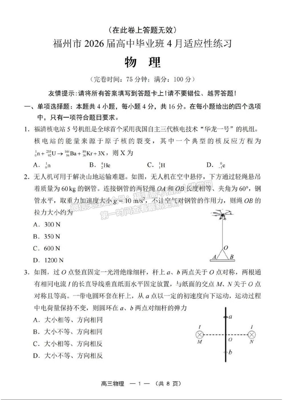 当前位置: 首页 > 复习备考 > 模拟试题 > 理综 > 2026届福建高三省质检物理试卷及参考答案(福州)