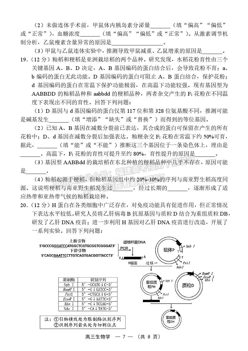 • 2025福建高考生物真题
