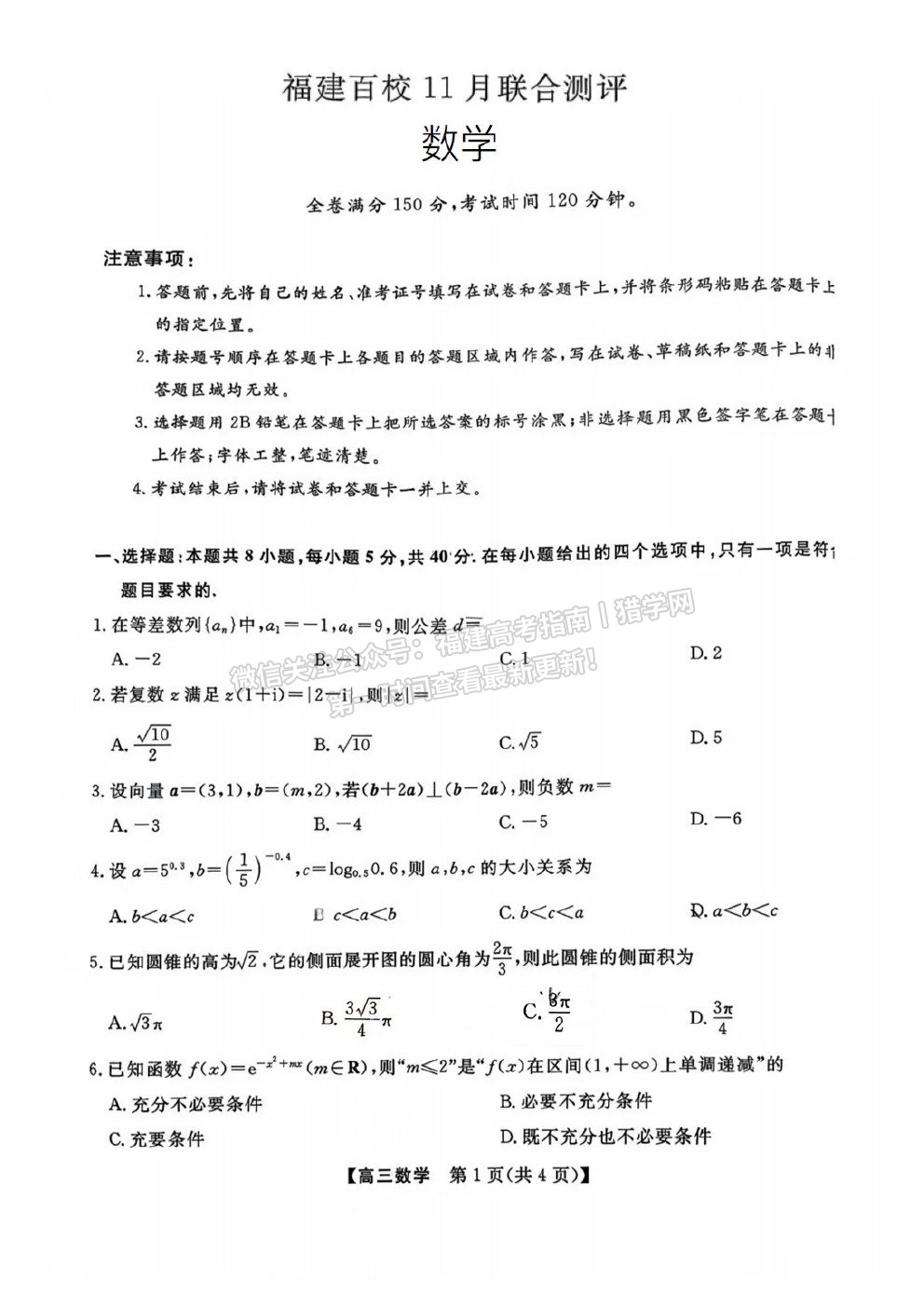 关注微信公众号:福建高考指南丨猎学网,查看最新高三考试答案!还有海量历年真题等着你!