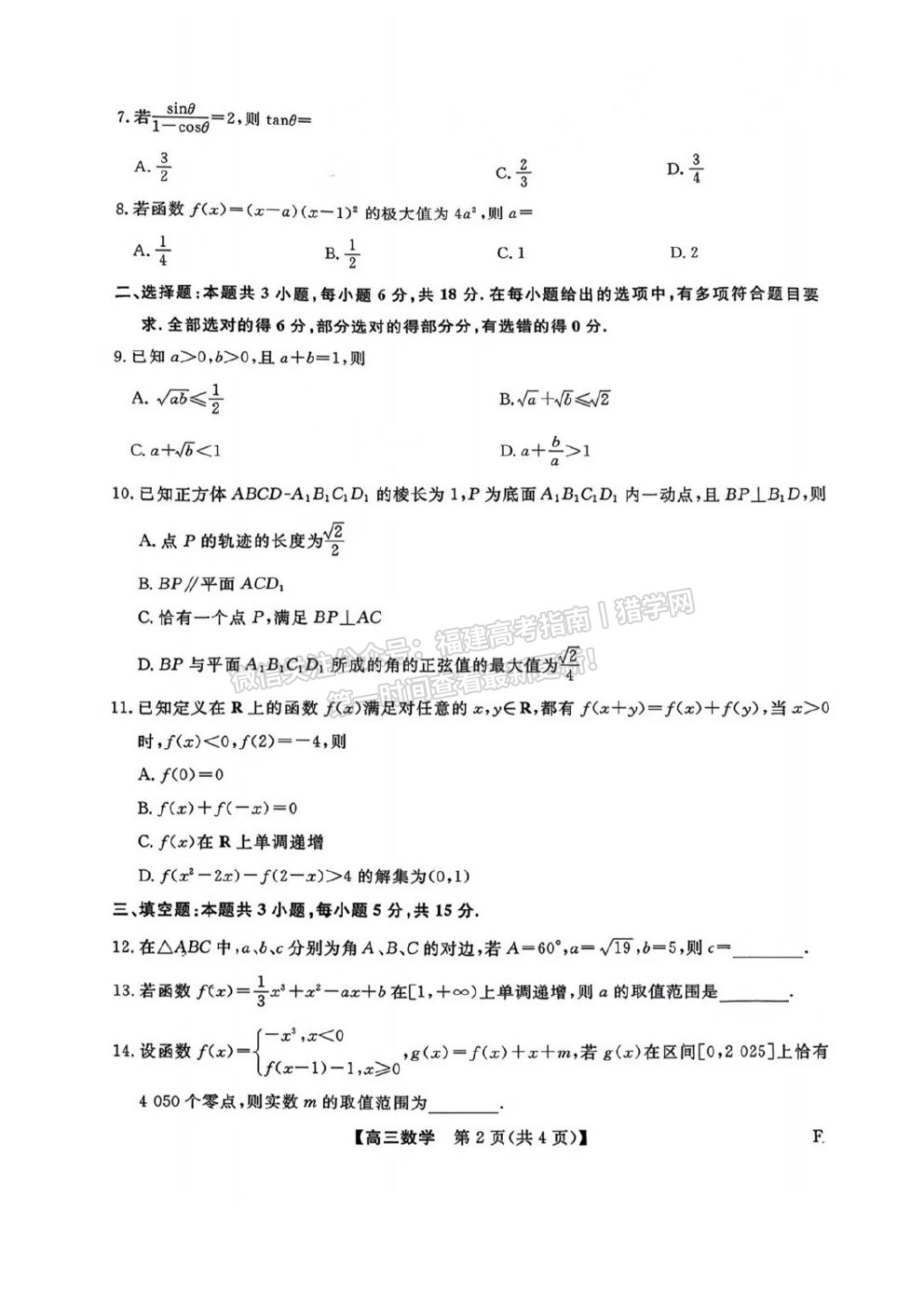 当前位置: 首页 > 复习备考 > 模拟试题 > 数学 > 2026福建百校11月期中考数学试题及答案