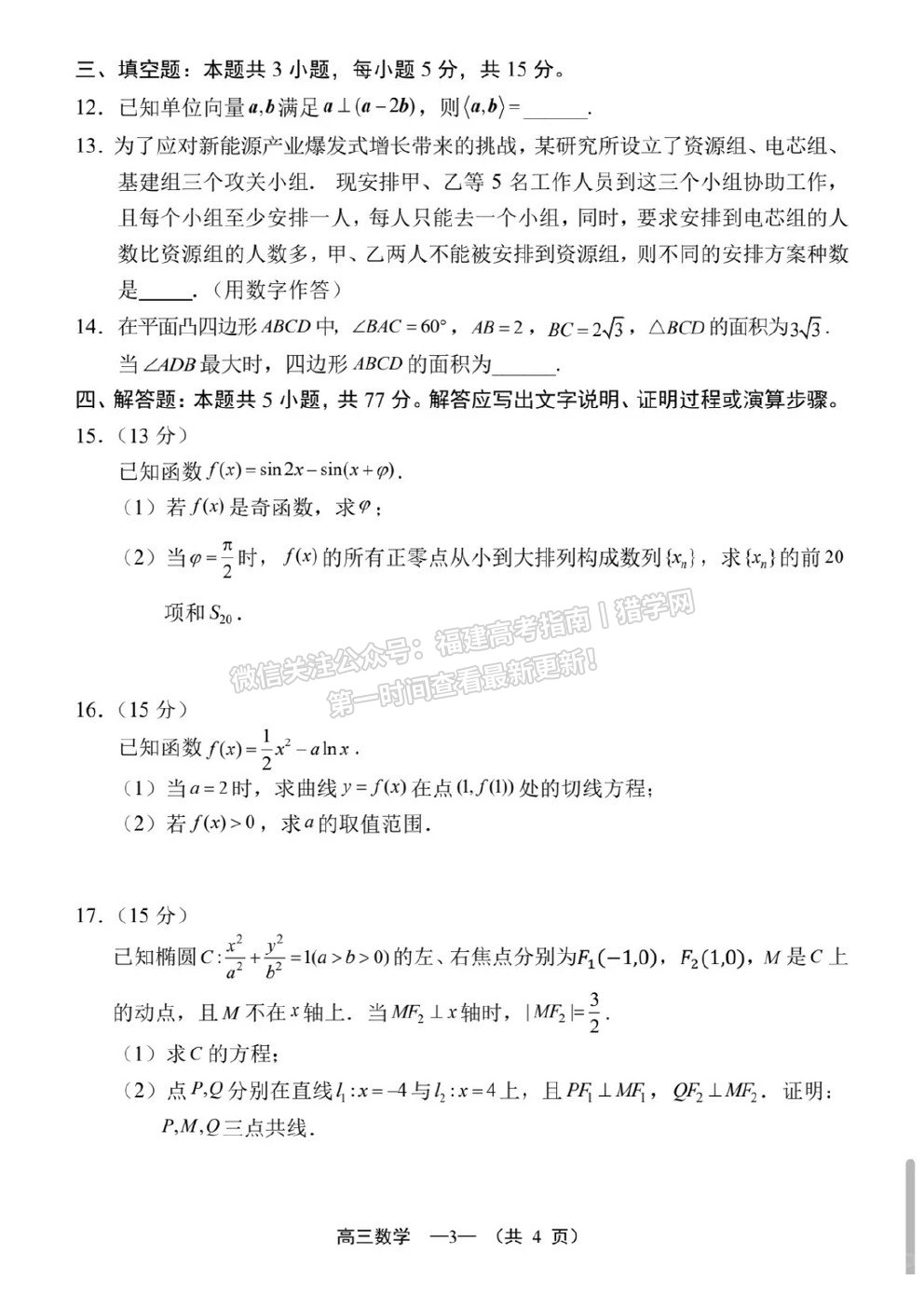 2026福建高三省质检各科试卷及答案持续更新中,福建高考网将第一时间公布2026福建高三省质检各科试卷及答案,考生及家长可收藏本页面随时查看2026福建高三省质检各科试卷及答案的最新更新。