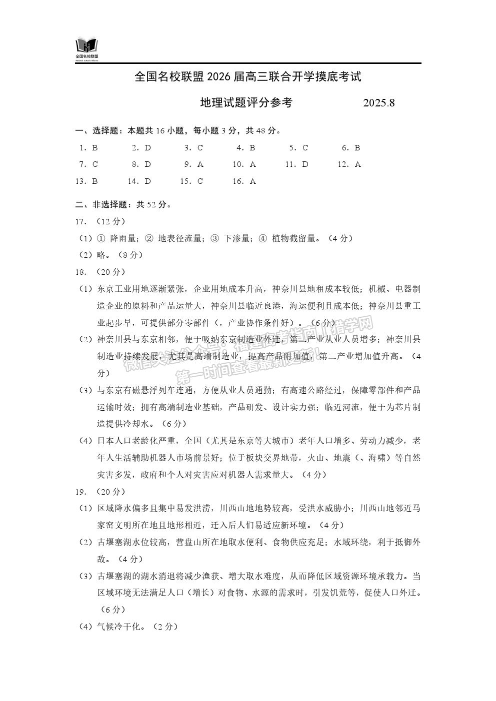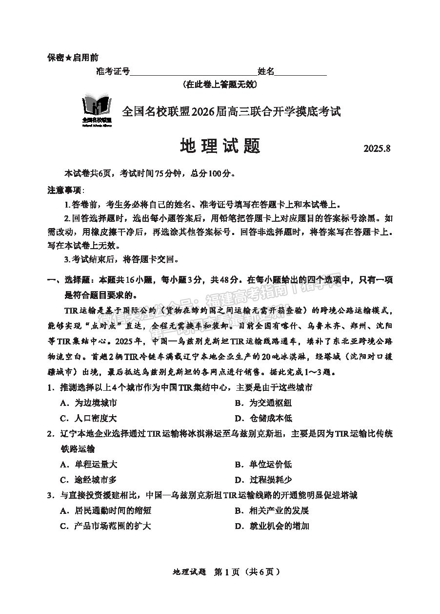 当前位置: 首页 > 复习备考 > 模拟试题 > 文综 > 全国名校联盟2026届高三联合开学摸底考试地理试题及答案