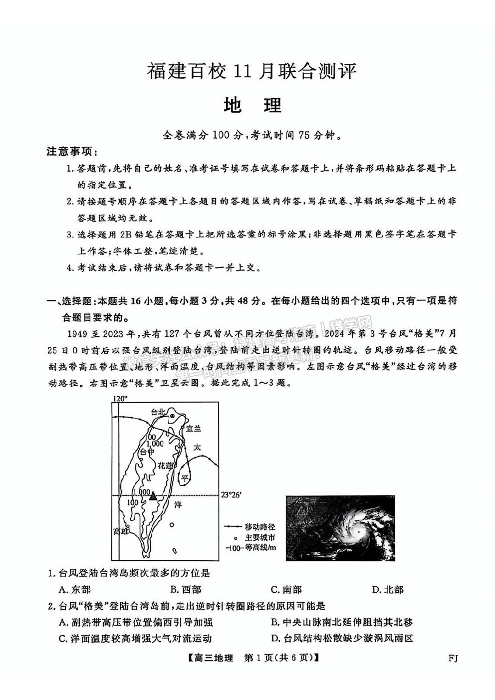 当前位置: 首页 > 复习备考 > 模拟试题 > 文综 > 2026福建百校11月期中考地理试题及答案