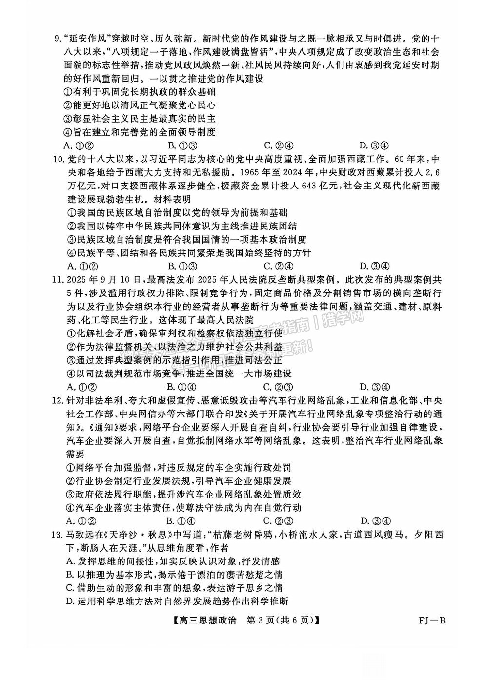 当前位置: 首页 > 复习备考 > 模拟试题 > 文综 > 2026福建百校11月期中考政治试题及答案