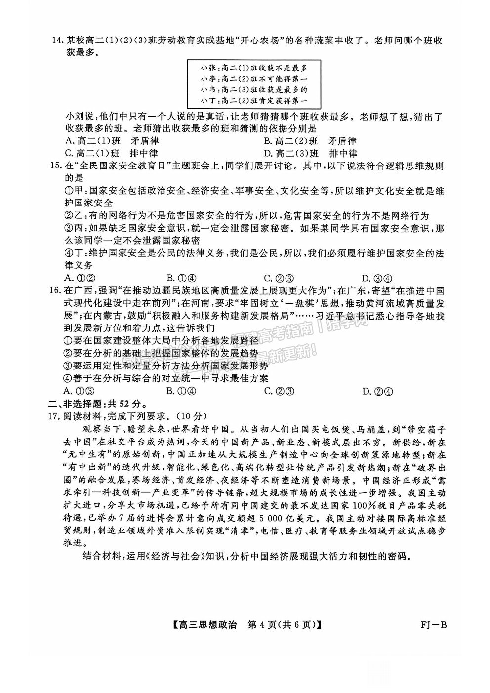 • 2024福建高考政治真题