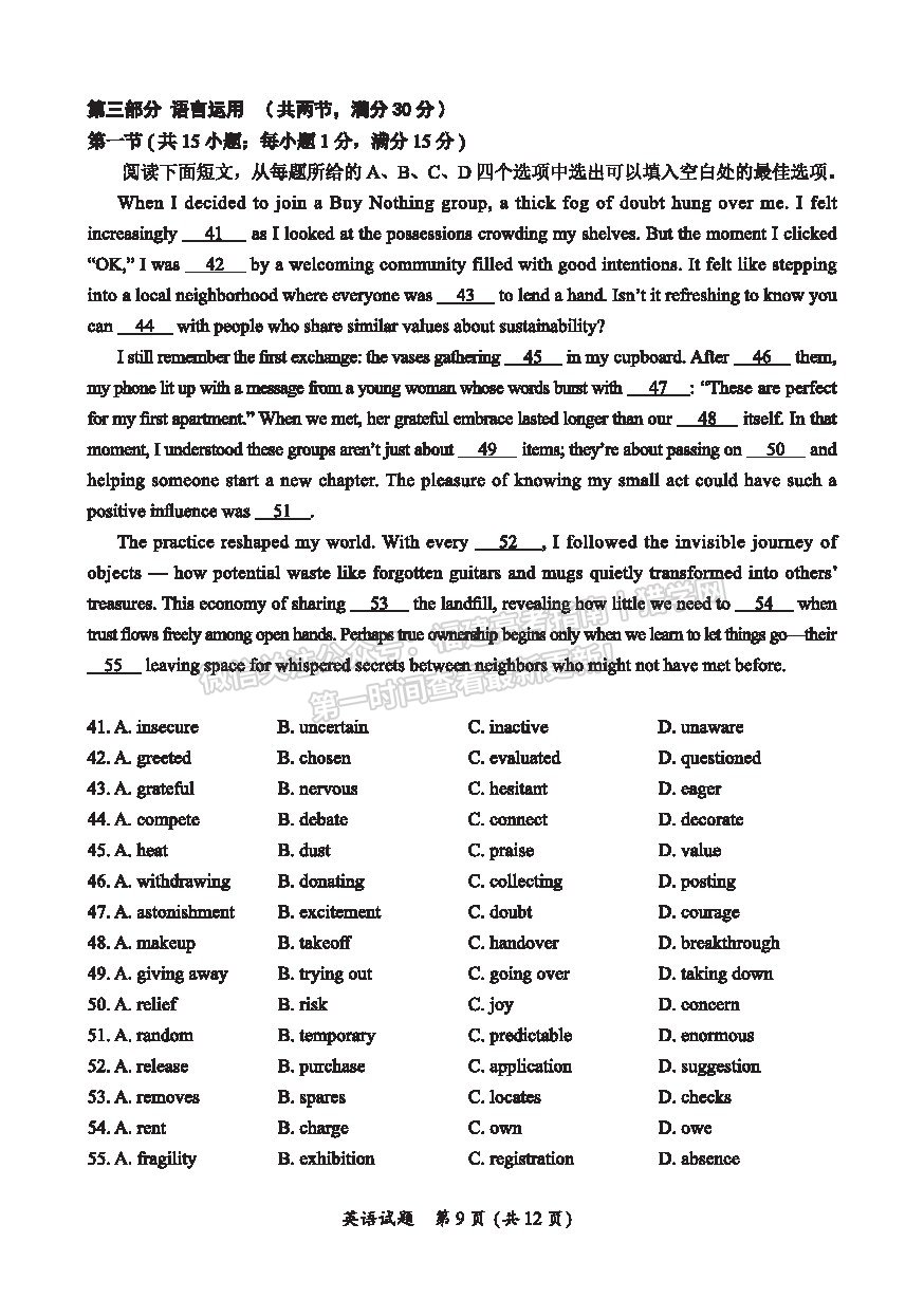 当前位置: 首页 > 复习备考 > 模拟试题 > 外语 > 全国名校联盟2026届高三联合开学摸底考试英语试题及答案