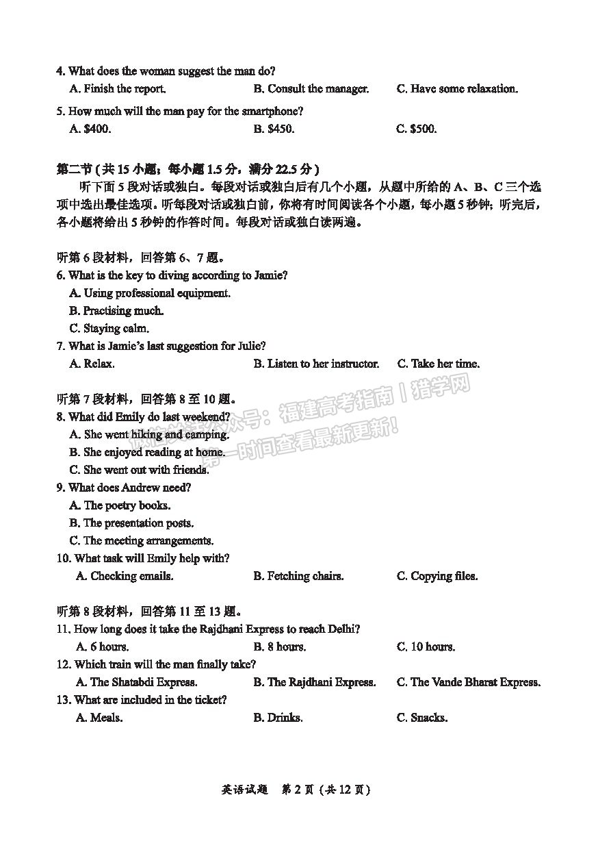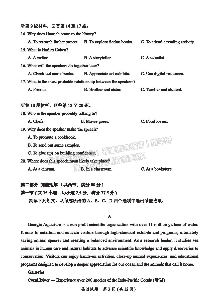 关注微信公众号:福建高考指南丨猎学网,查看最新高三考试答案!还有海量历年真题等着你!