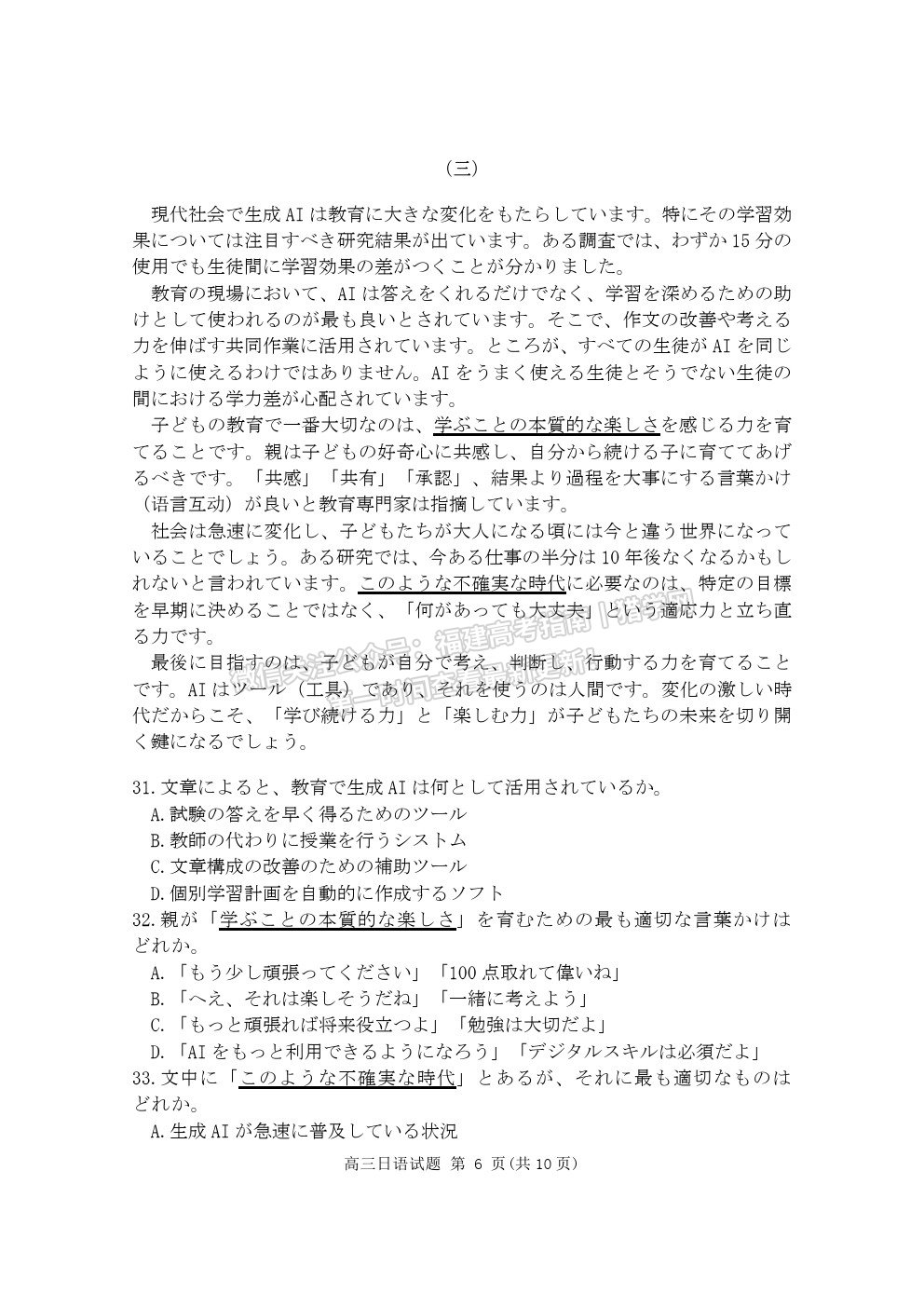 • 2024福建高考政治真题