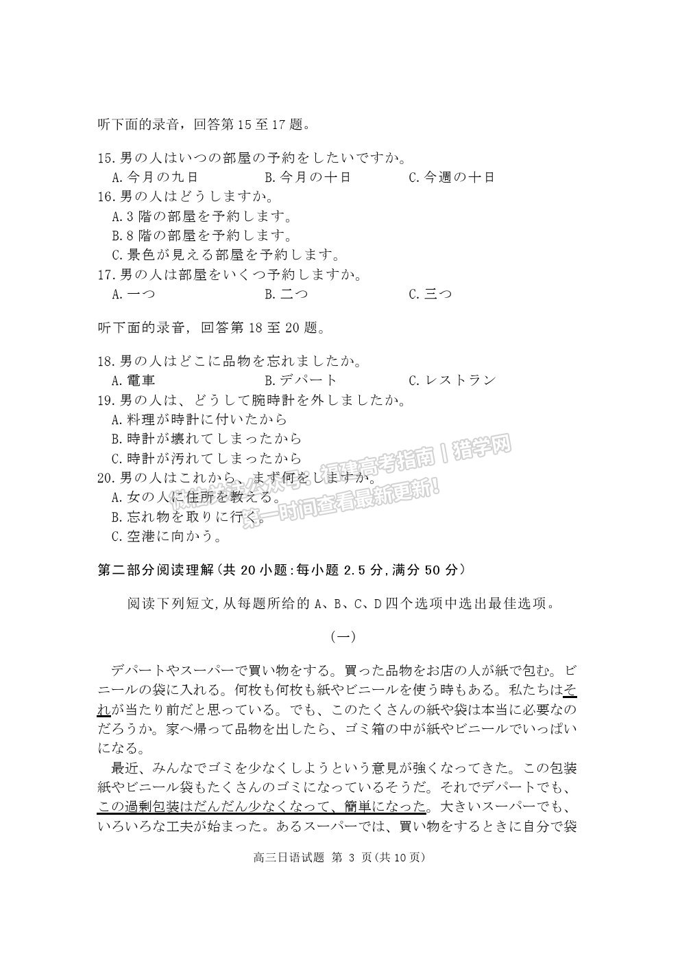关注微信公众号:福建高考指南丨猎学网,查看最新高三考试答案!还有海量历年真题等着你!
