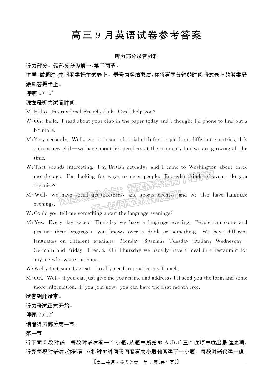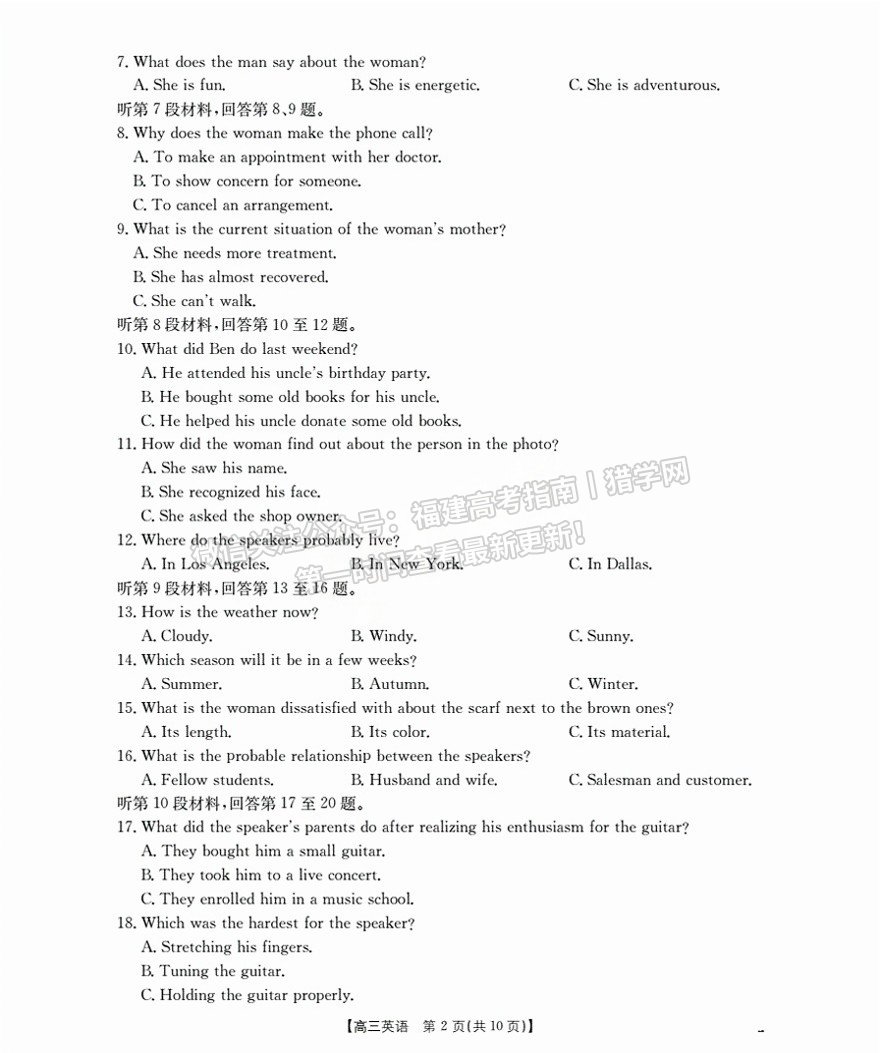 关注微信公众号:福建高考指南丨猎学网,查看最新高三考试答案!还有海量历年真题等着你!