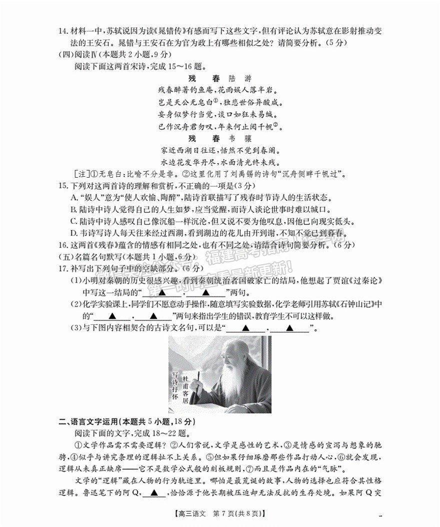 金太阳·福建省2026届高三9月开学联考(26-17C)语文试卷及答案