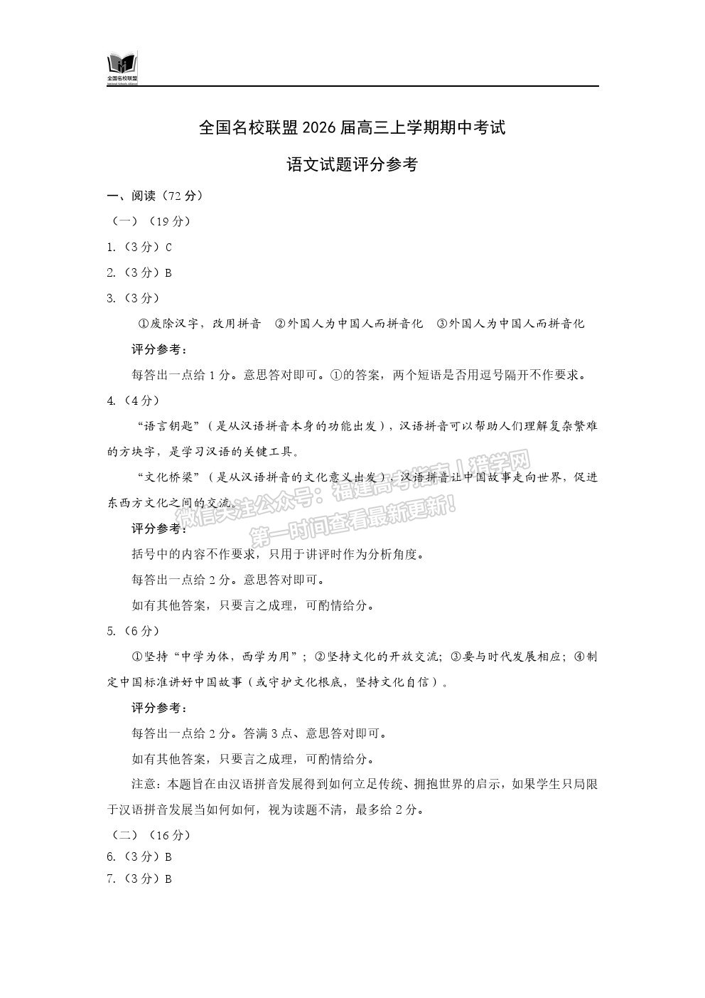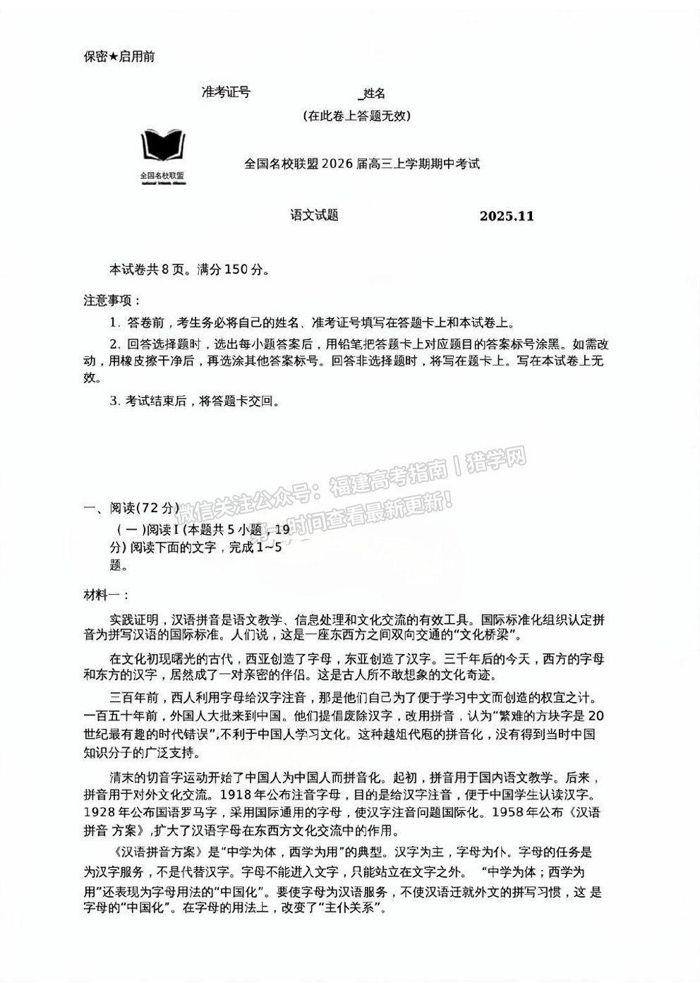 当前位置: 首页 > 复习备考 > 模拟试题 > 语文 > 2026福建名校高三11月期中考语文试题及答案
