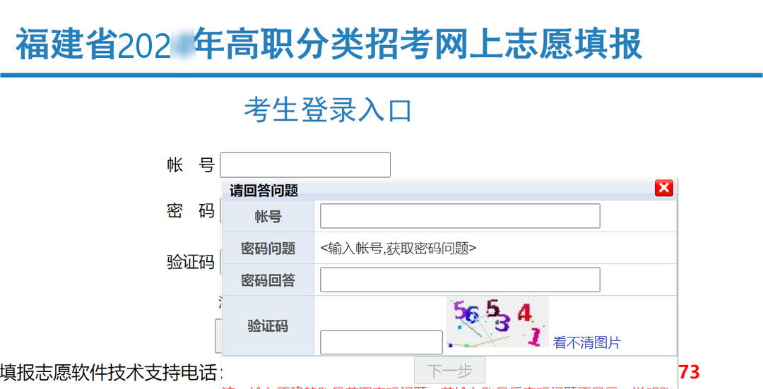 ①登录填报网站:输入账号、密码等相关验证信息(账号和密码为考生报名时申请并设置的)