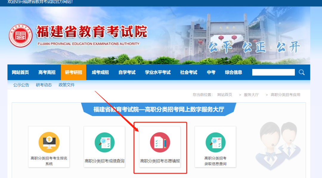 考生通过省教育考试院网站(www.eeafj.cn)“数字服务大厅——高职分类招考”栏目中的“高职分类招考志愿填报”进行填报。