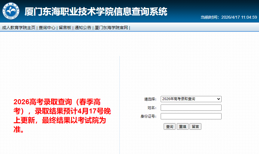 2026年福建高职分类招考专科批常规志愿录取结果预计4月20日8:00(征求志愿)前可查询,院校官网一般会比考试院更早查到录取结果。(部分院校预计今晚可查录取!)