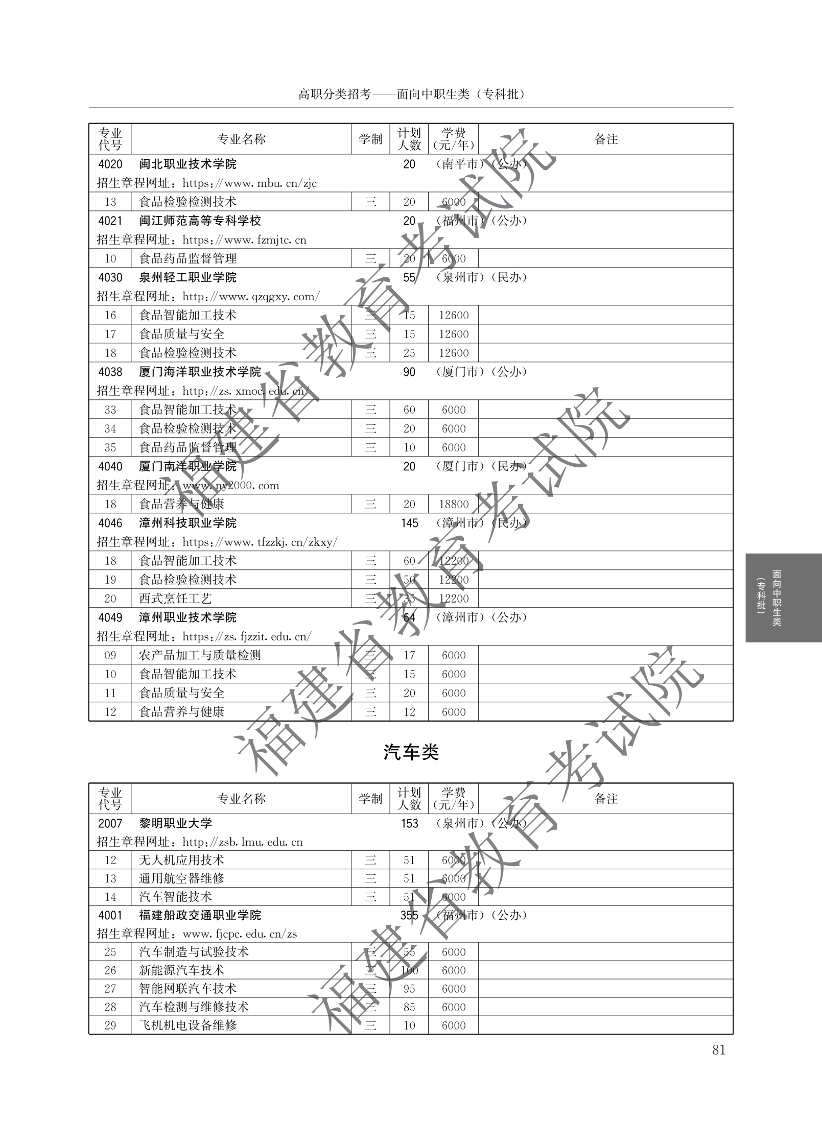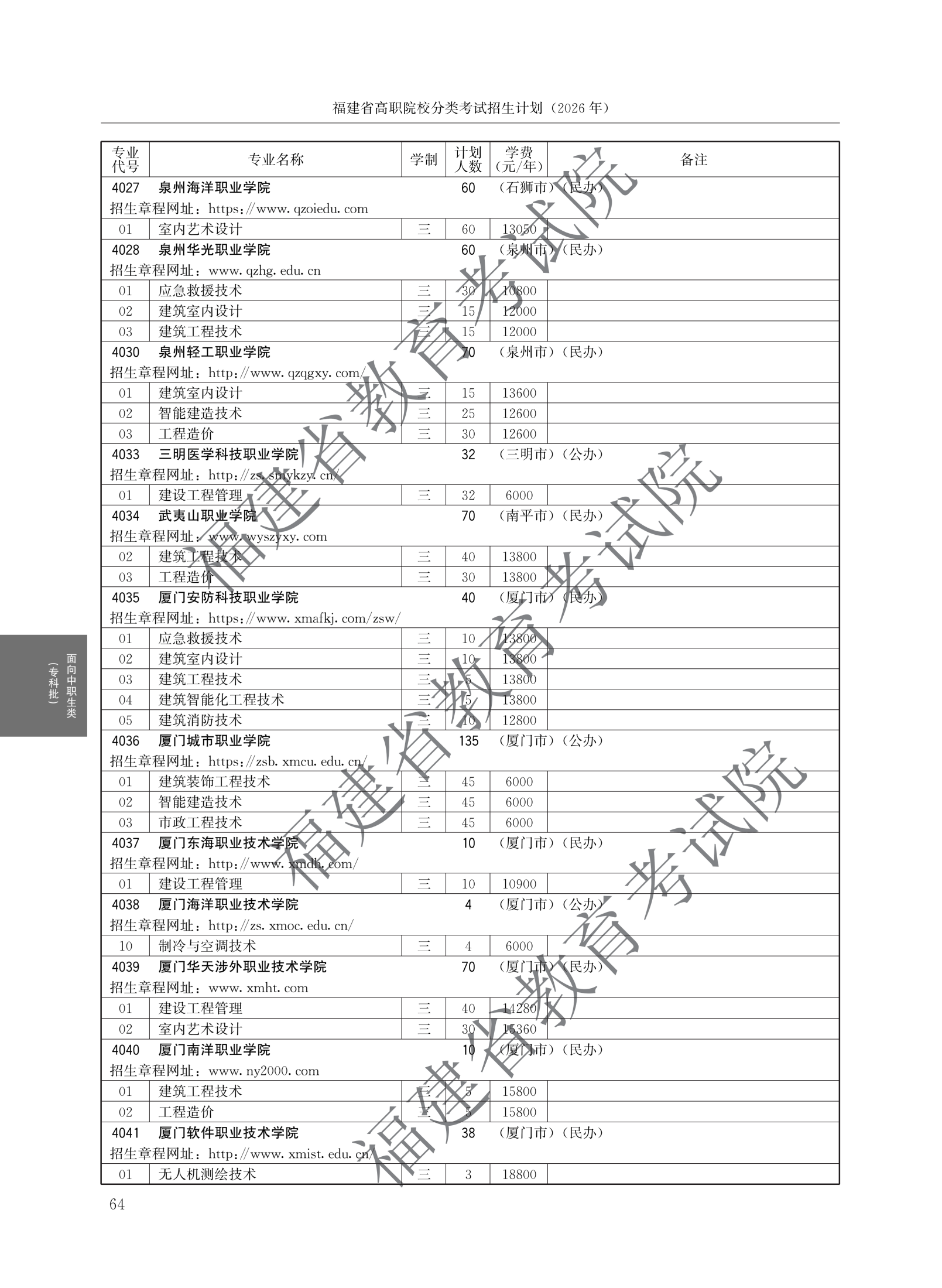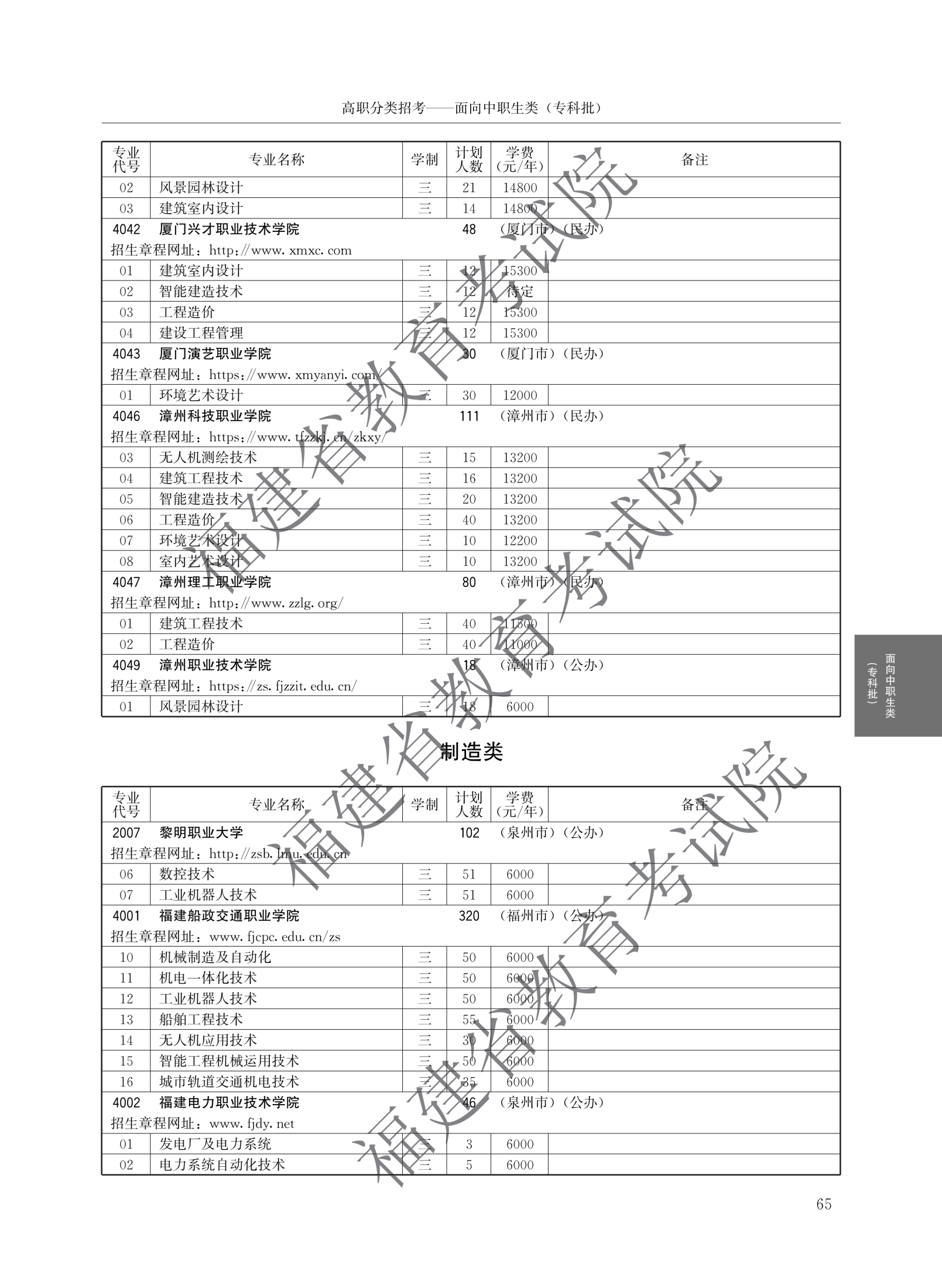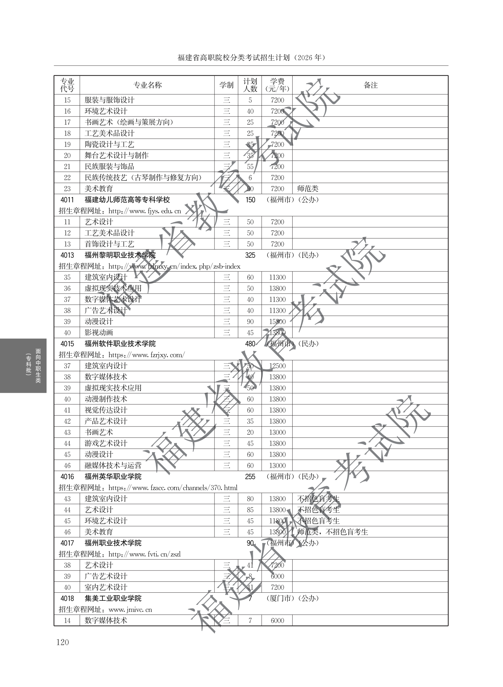 福建高职分类招生计划