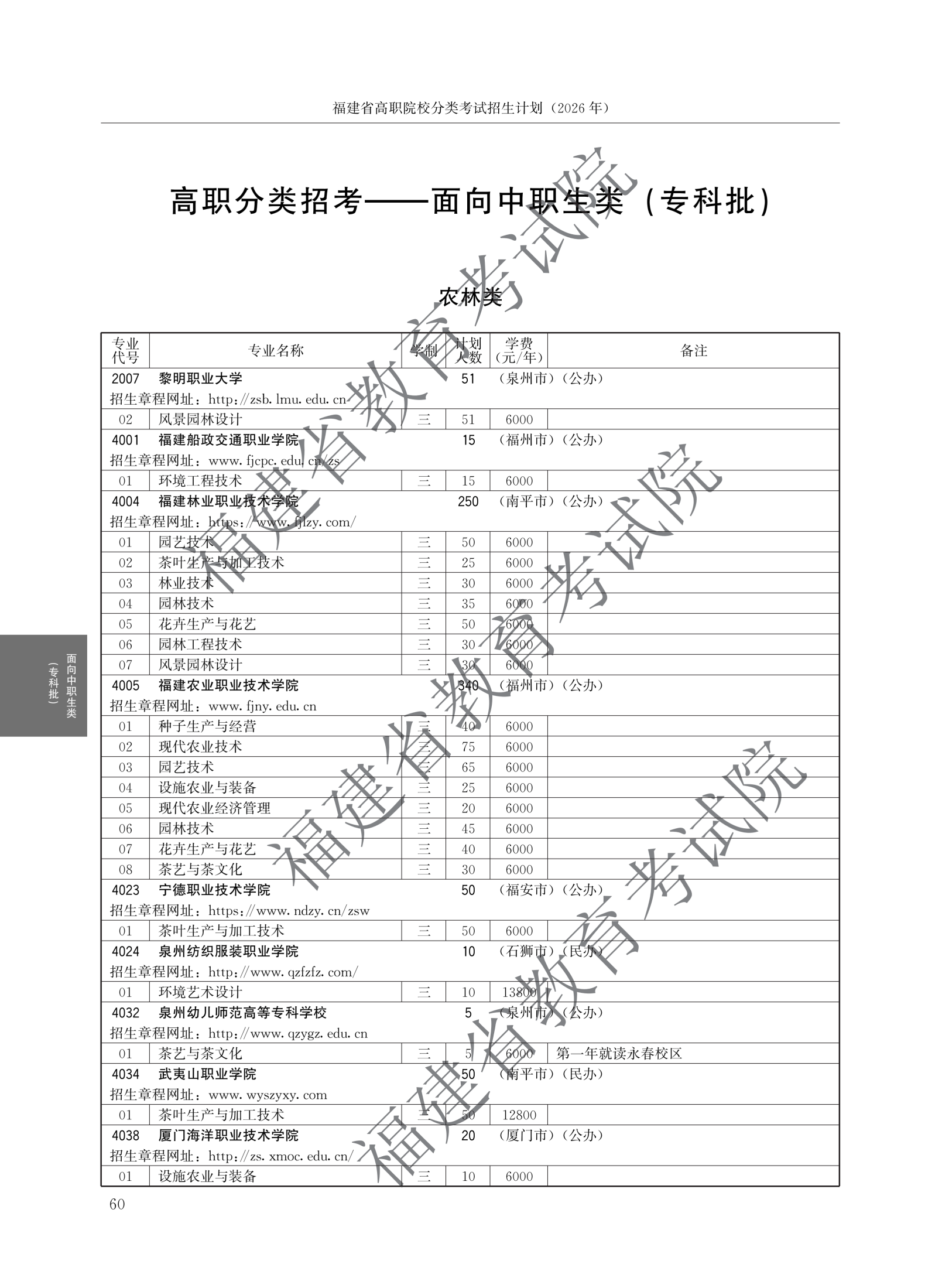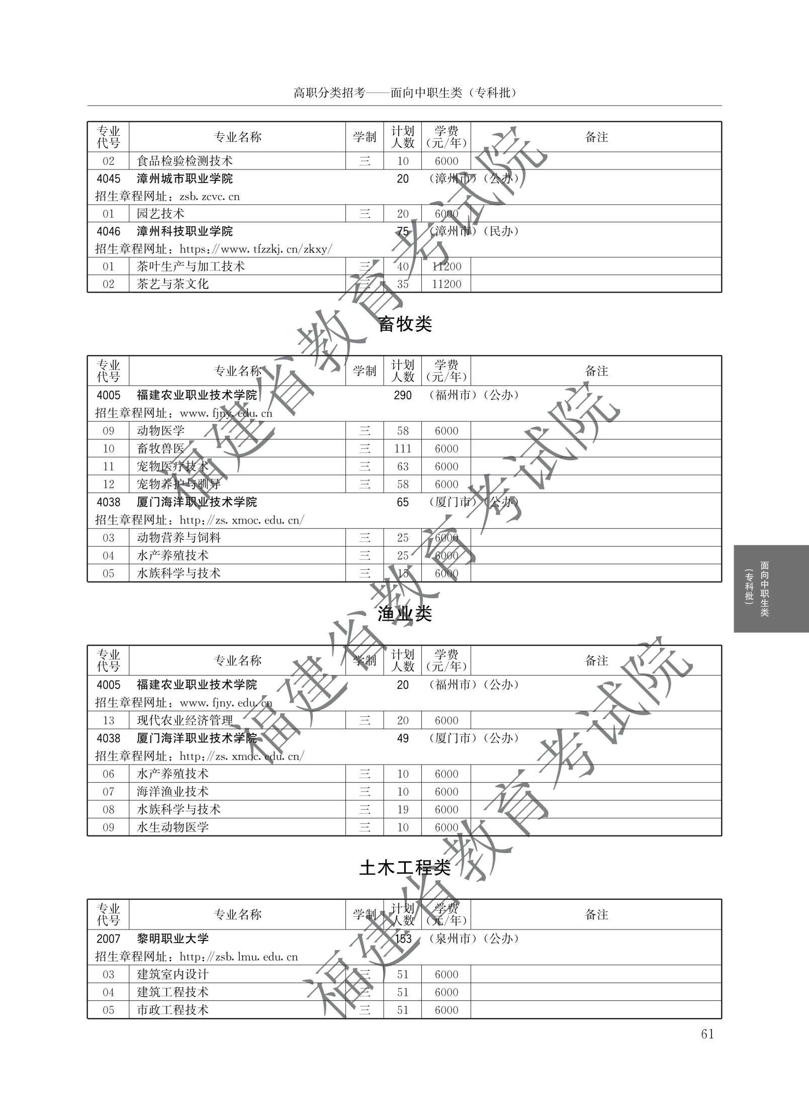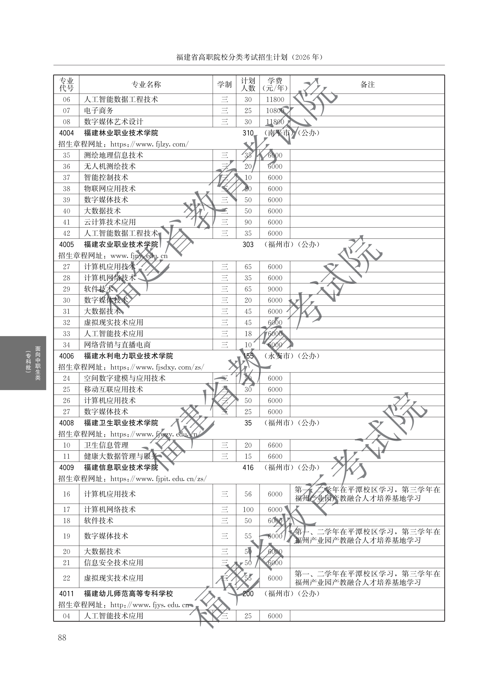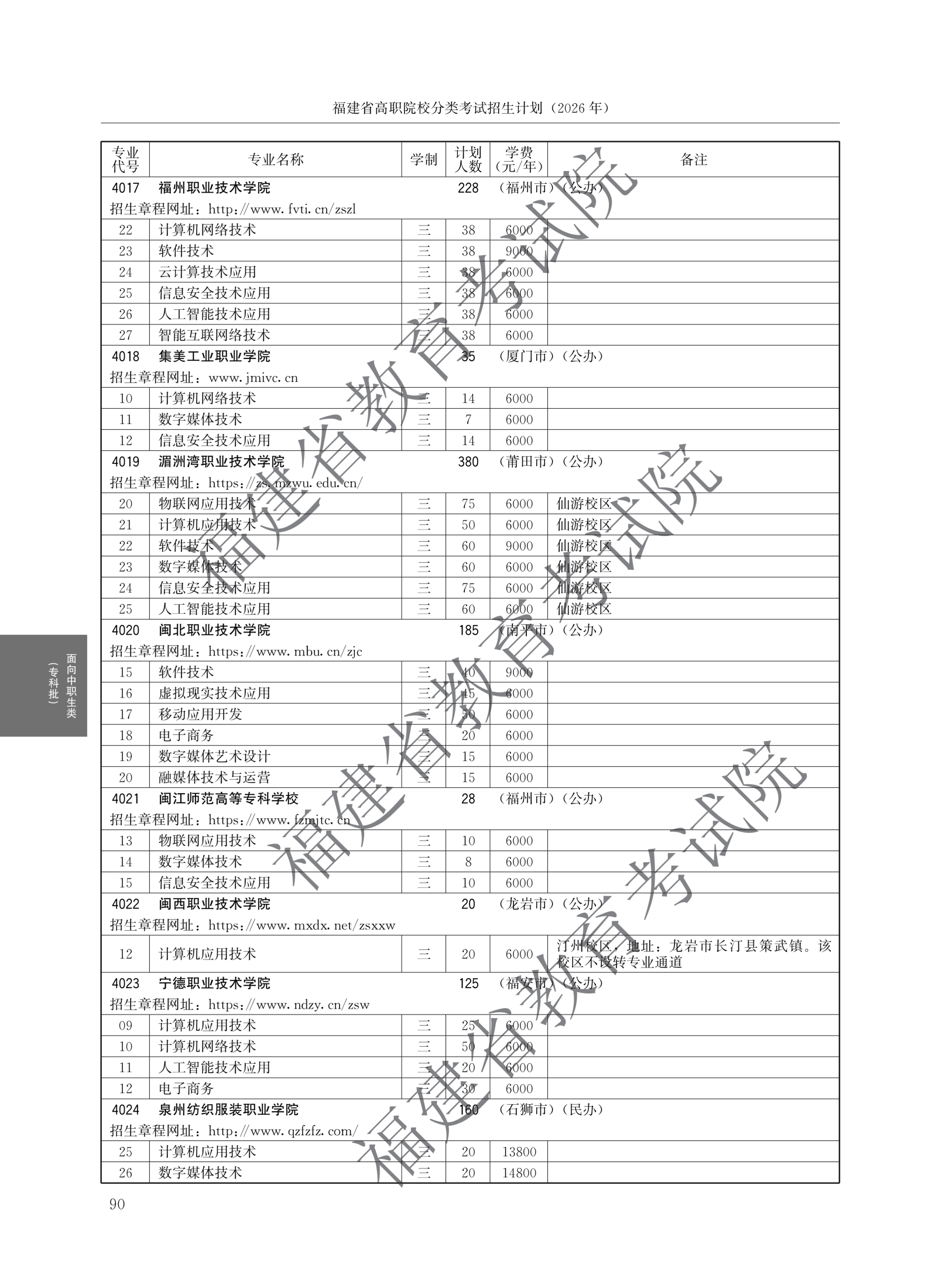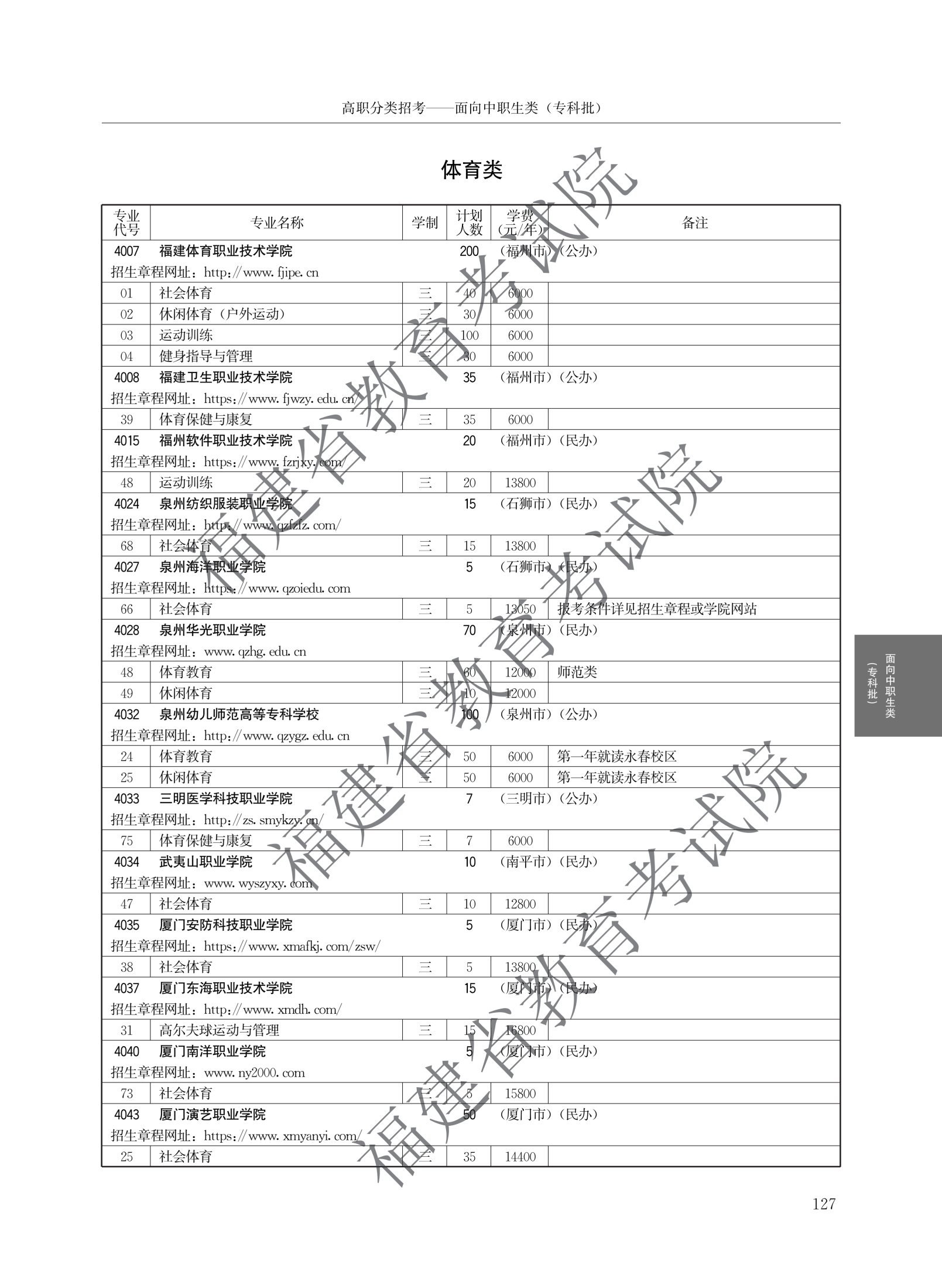 福建高职分类招生计划