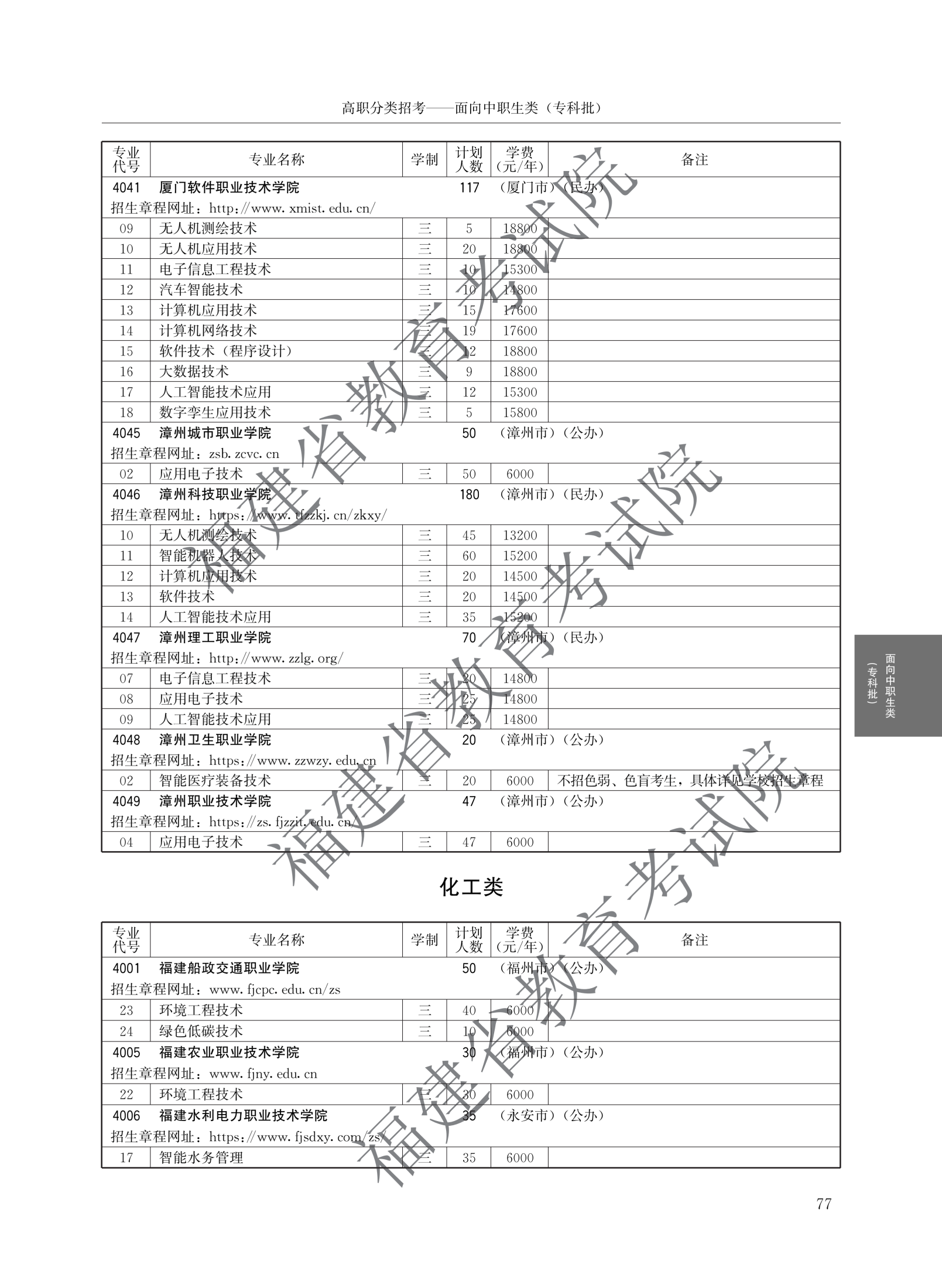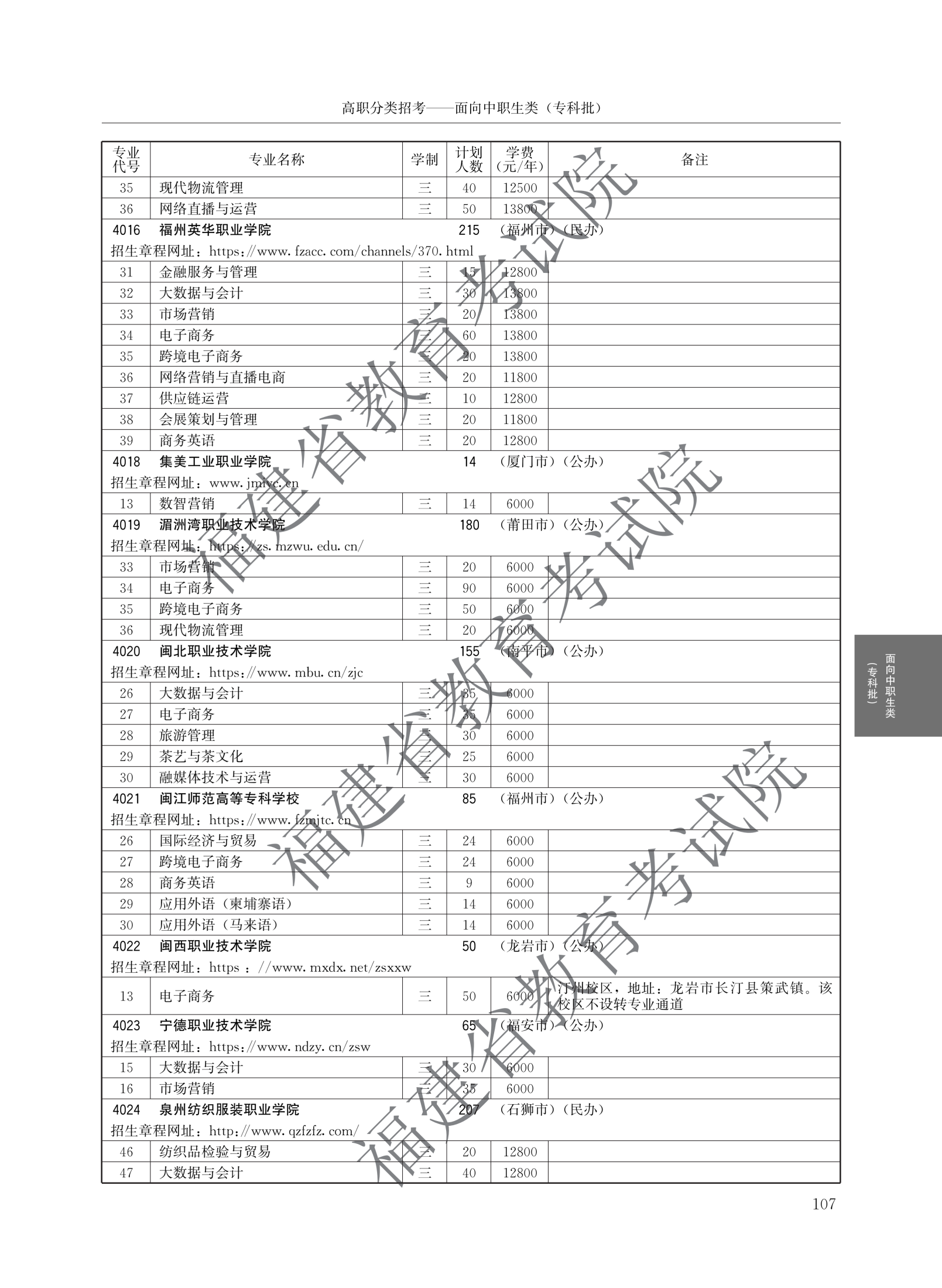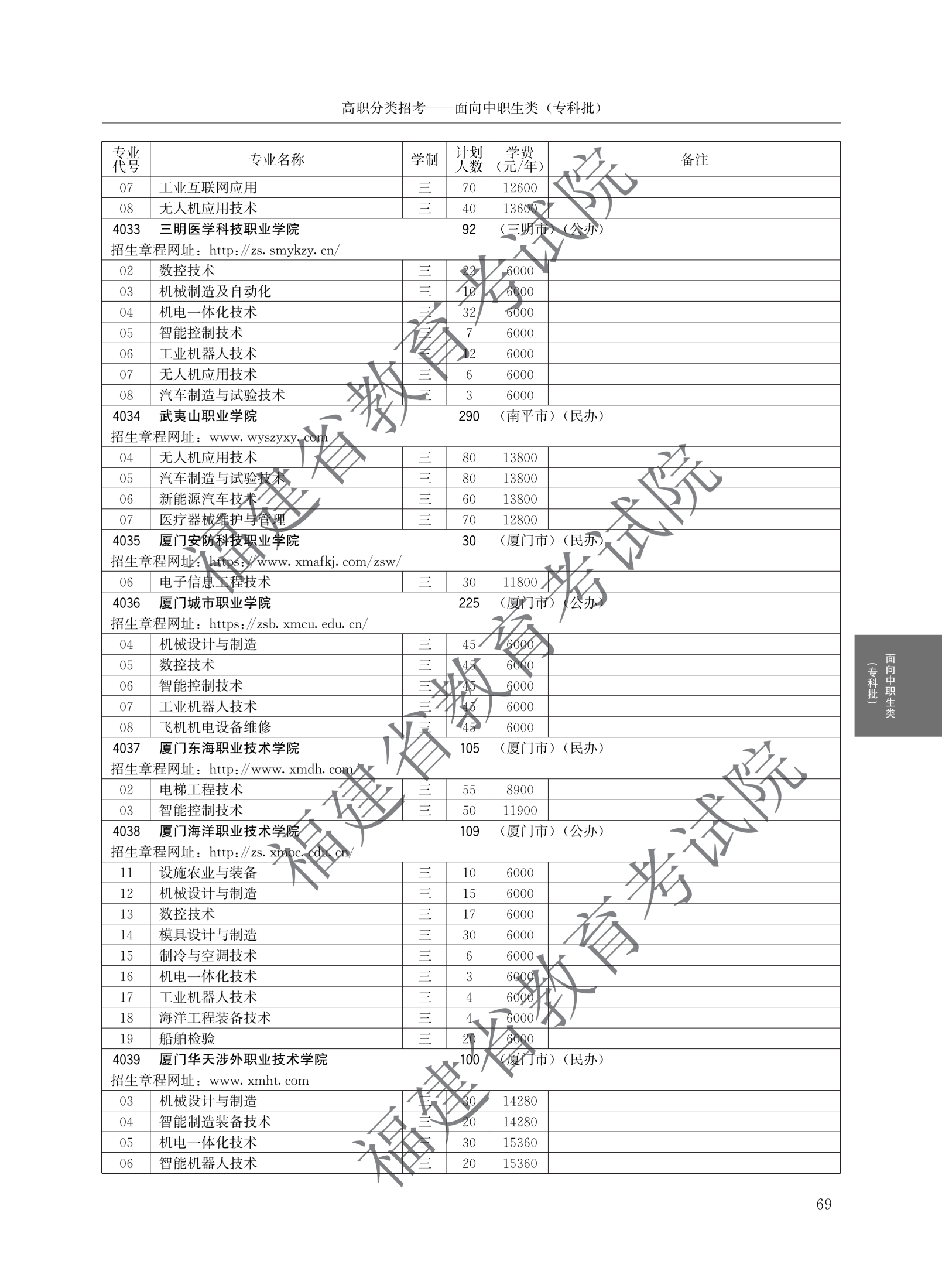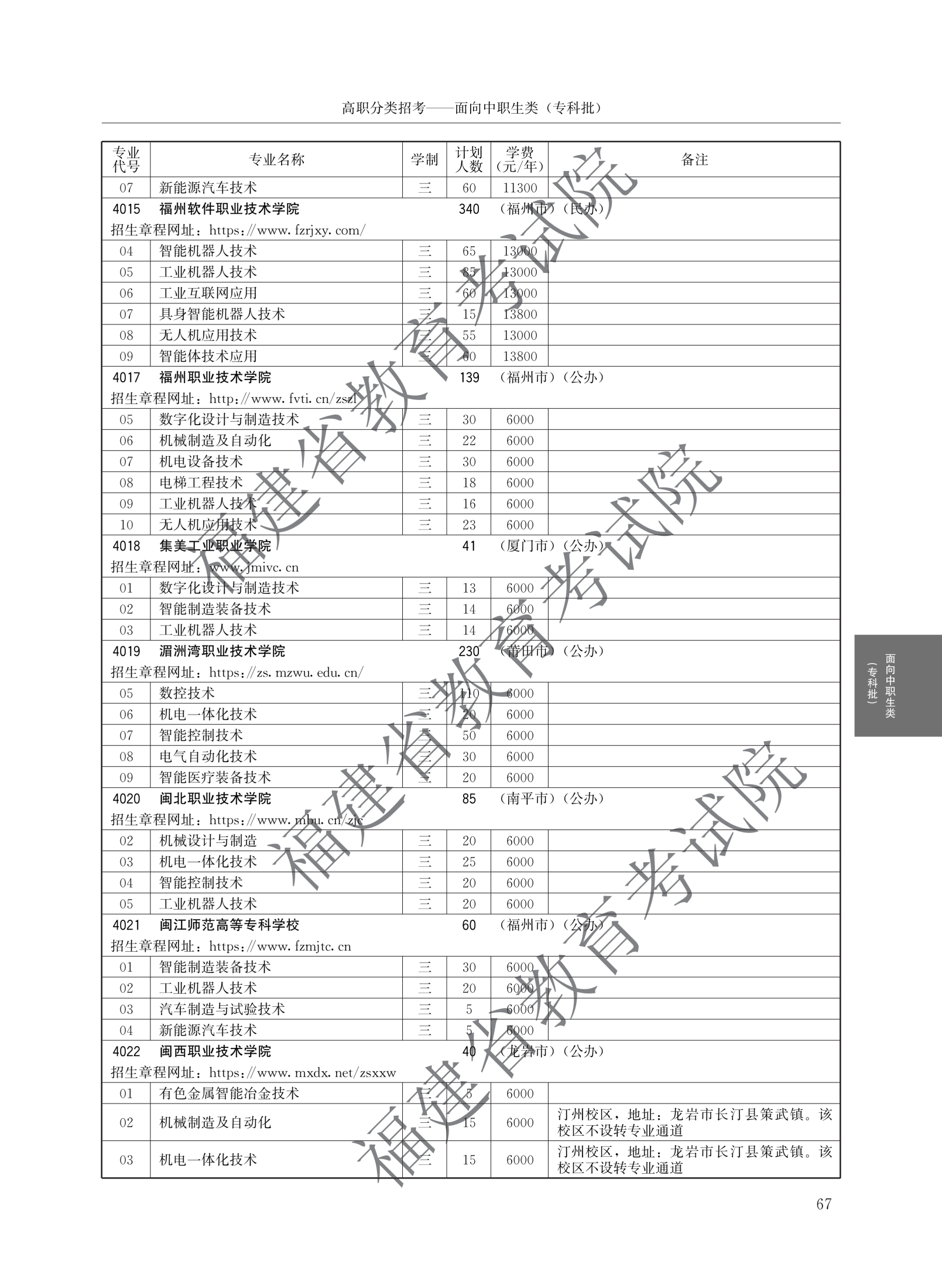 福建高职分类招生计划