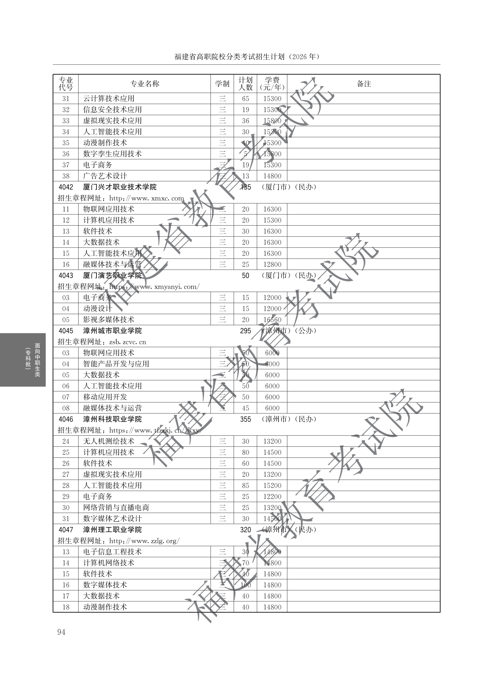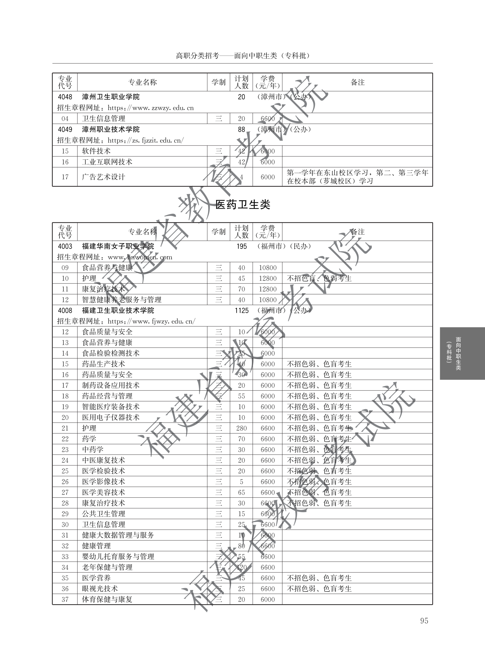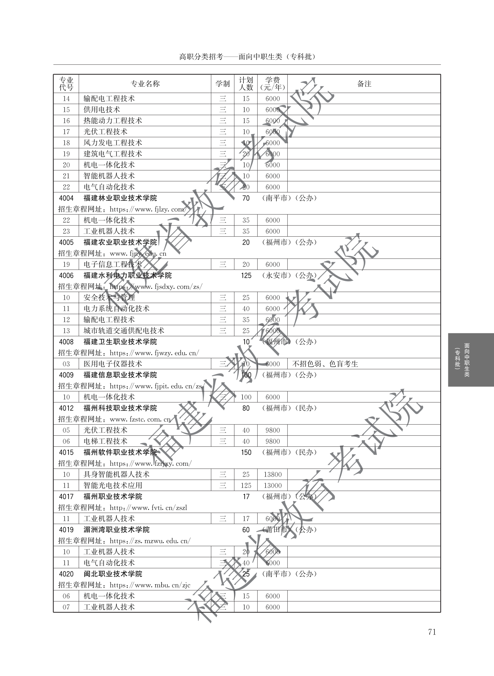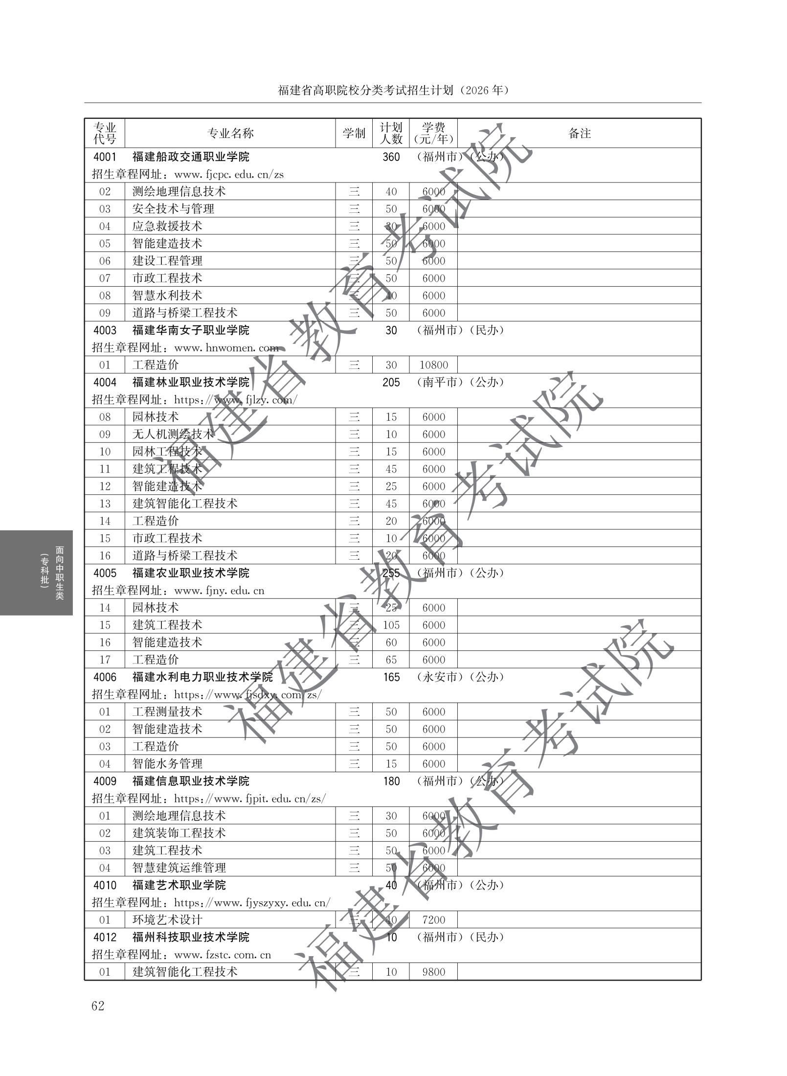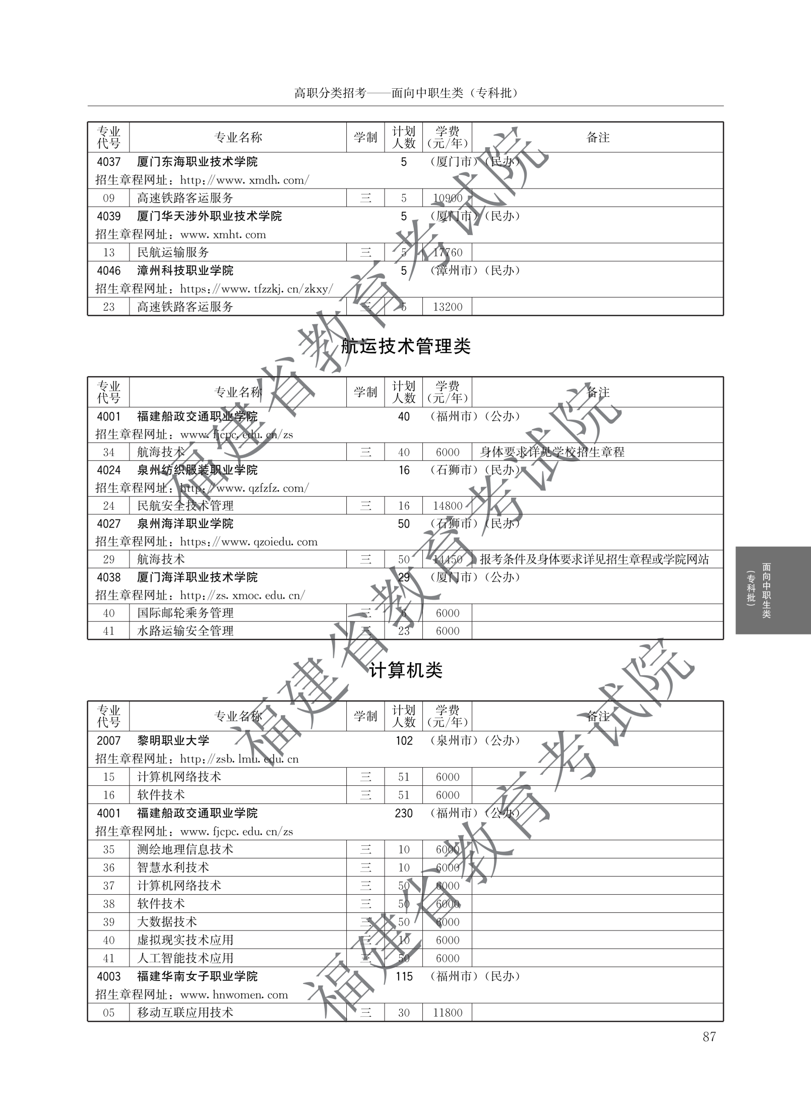福建高职分类招生计划