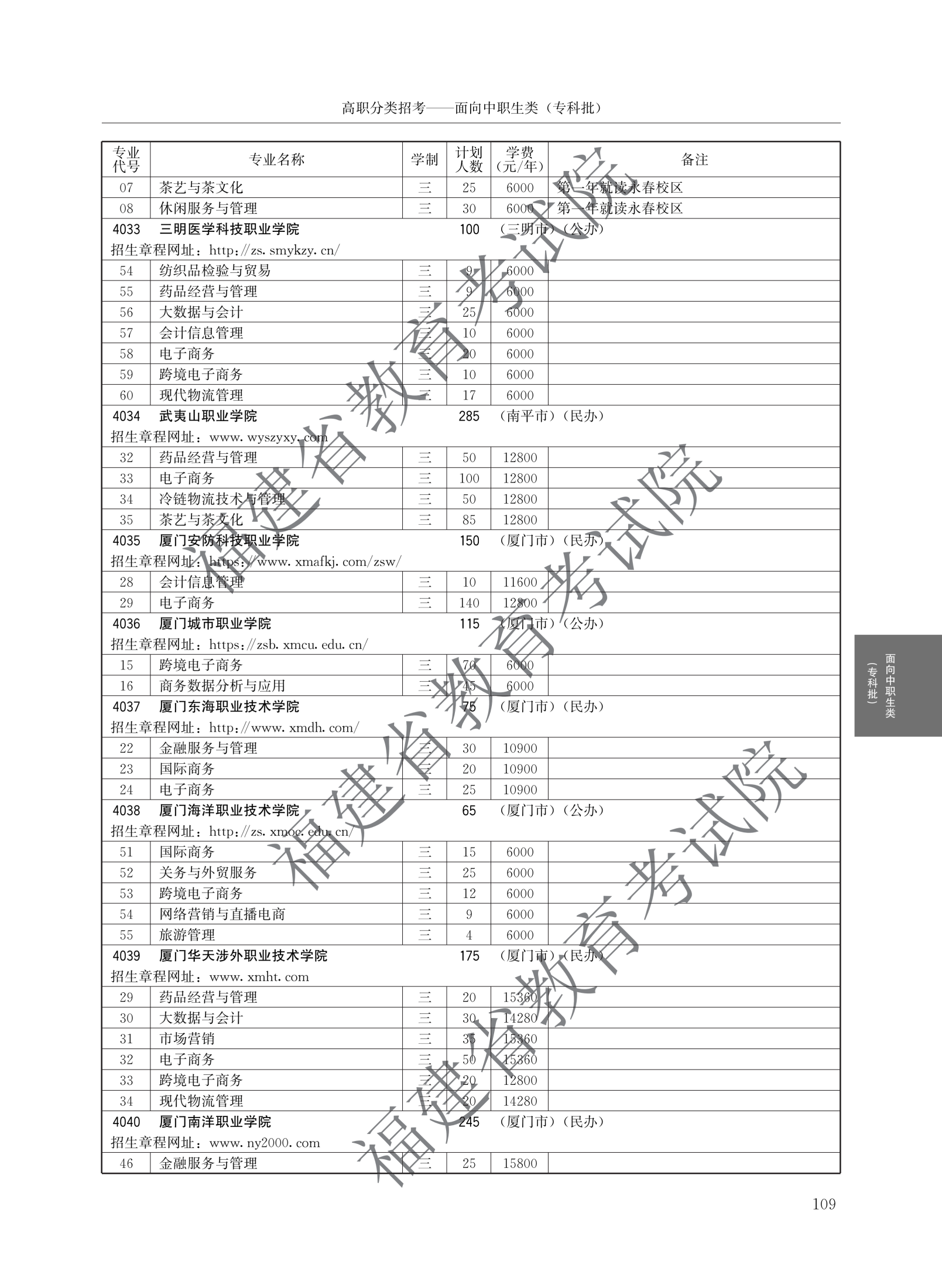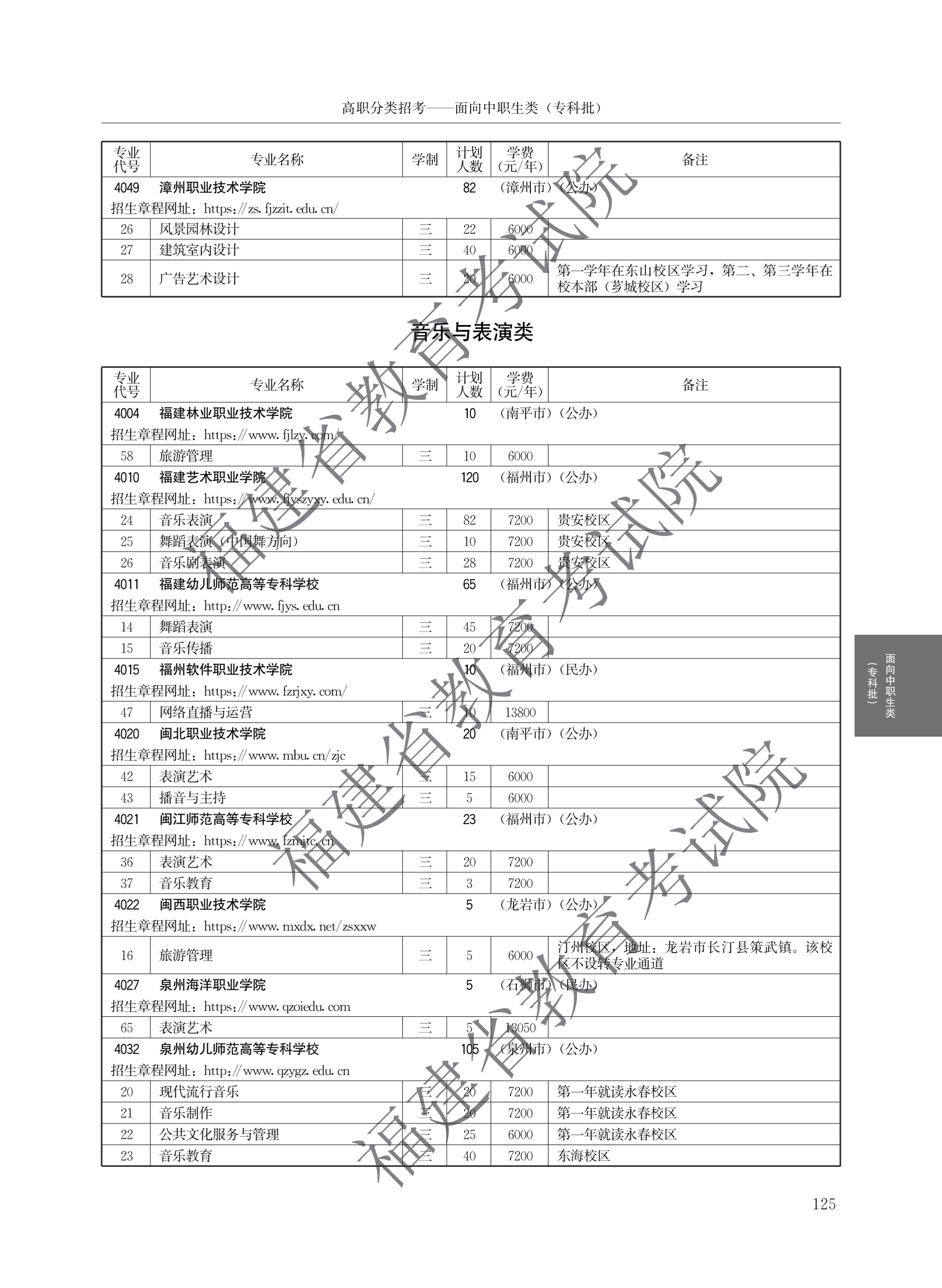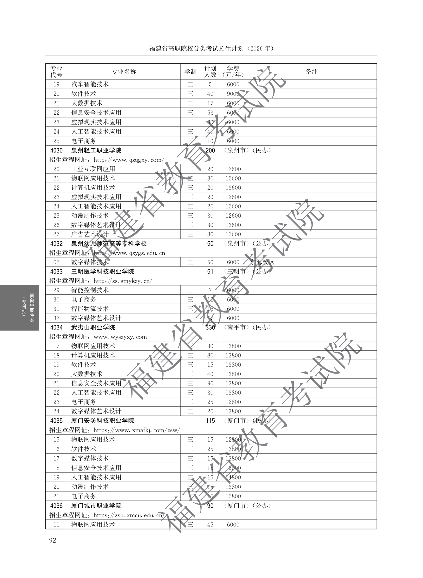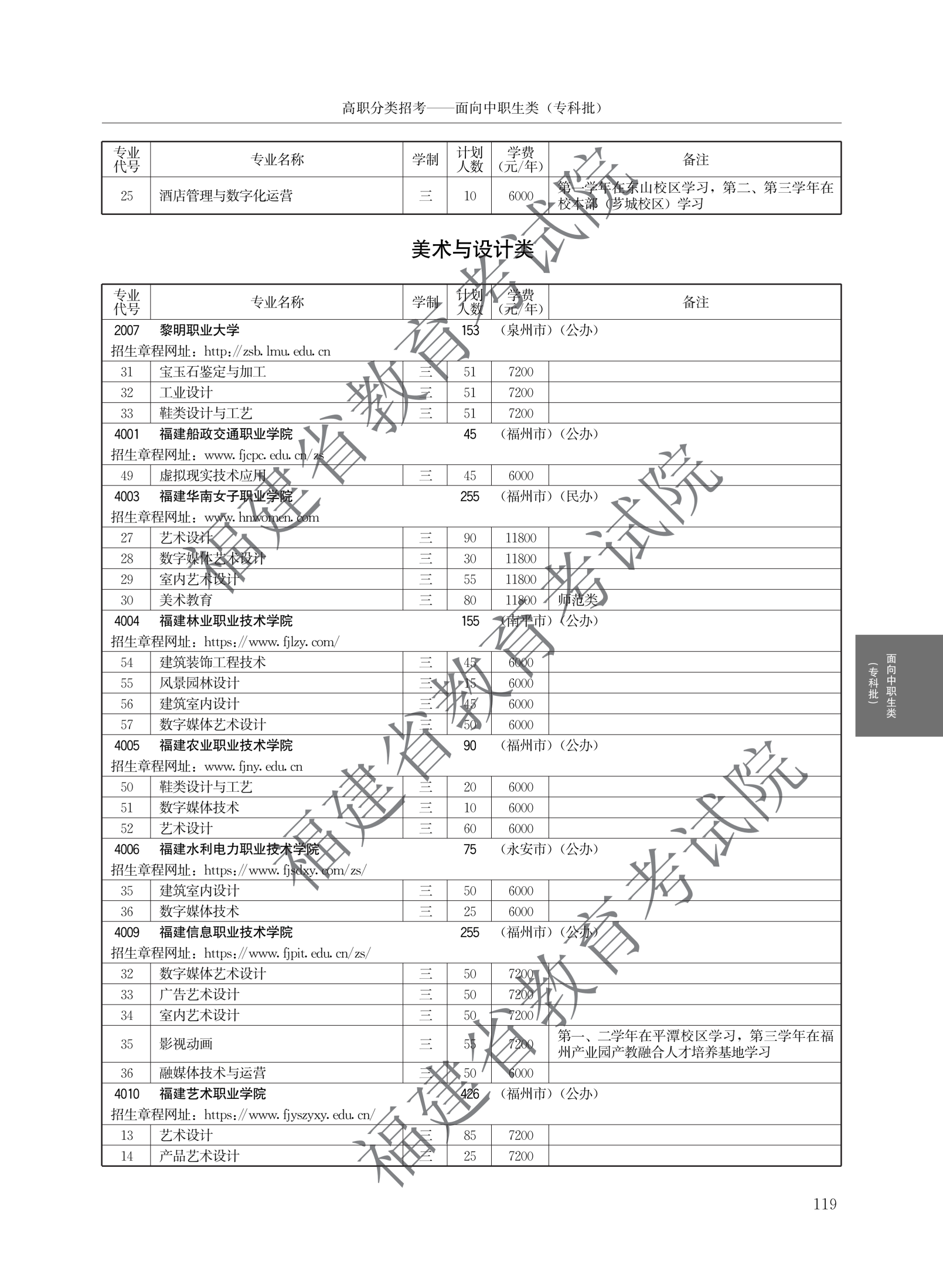 福建高职分类招生计划