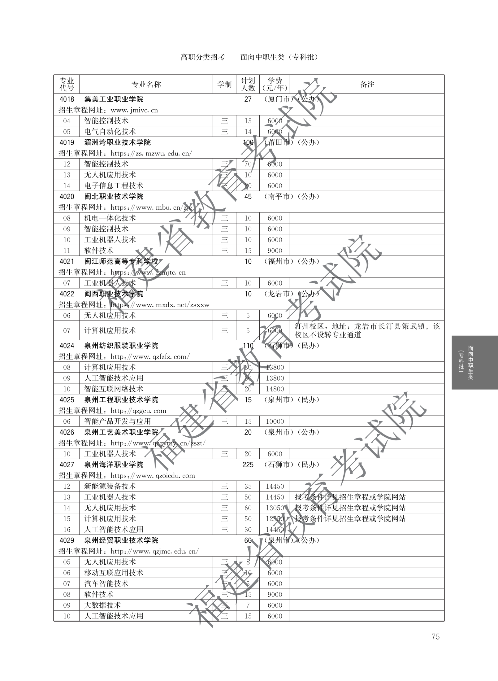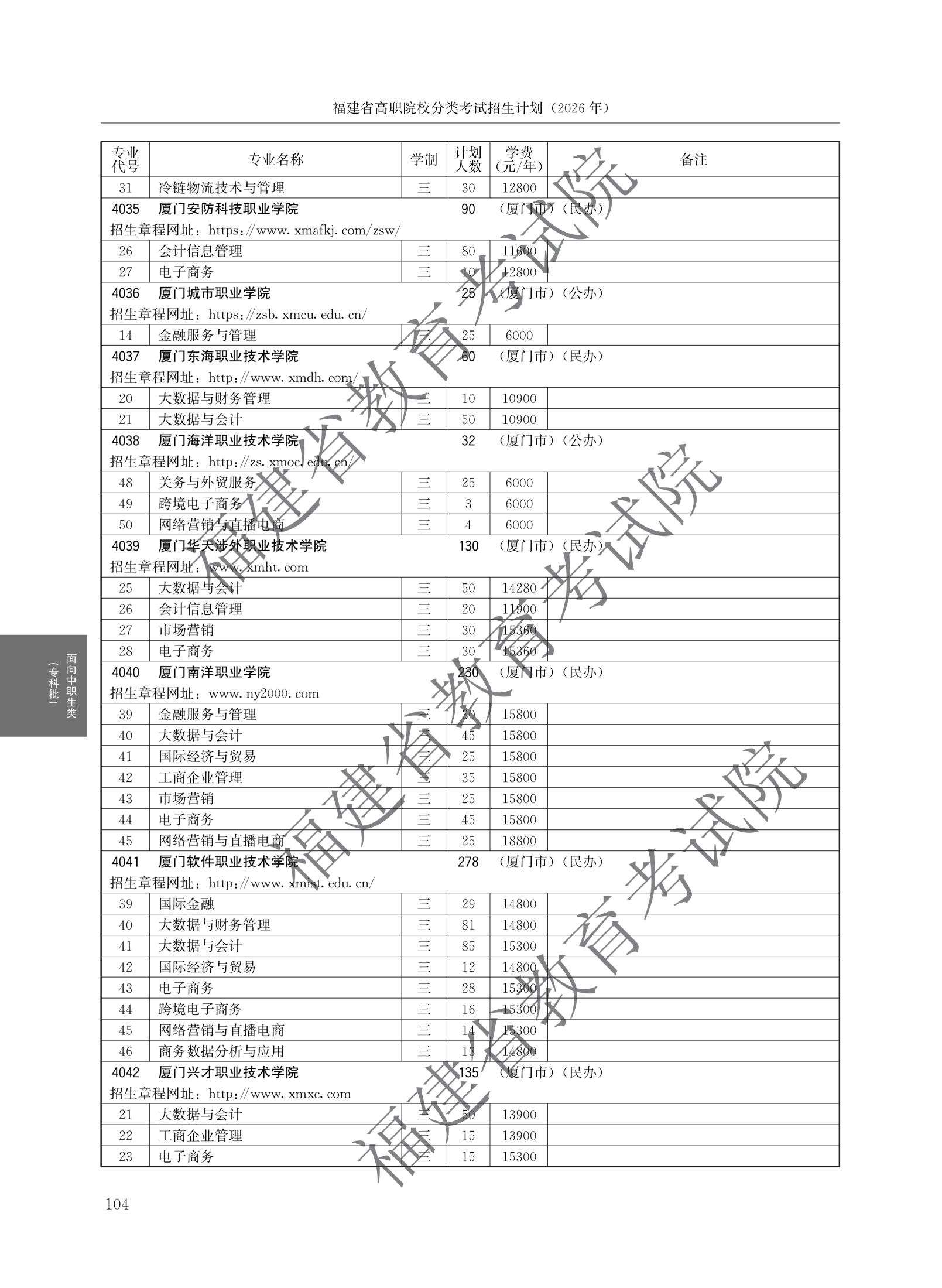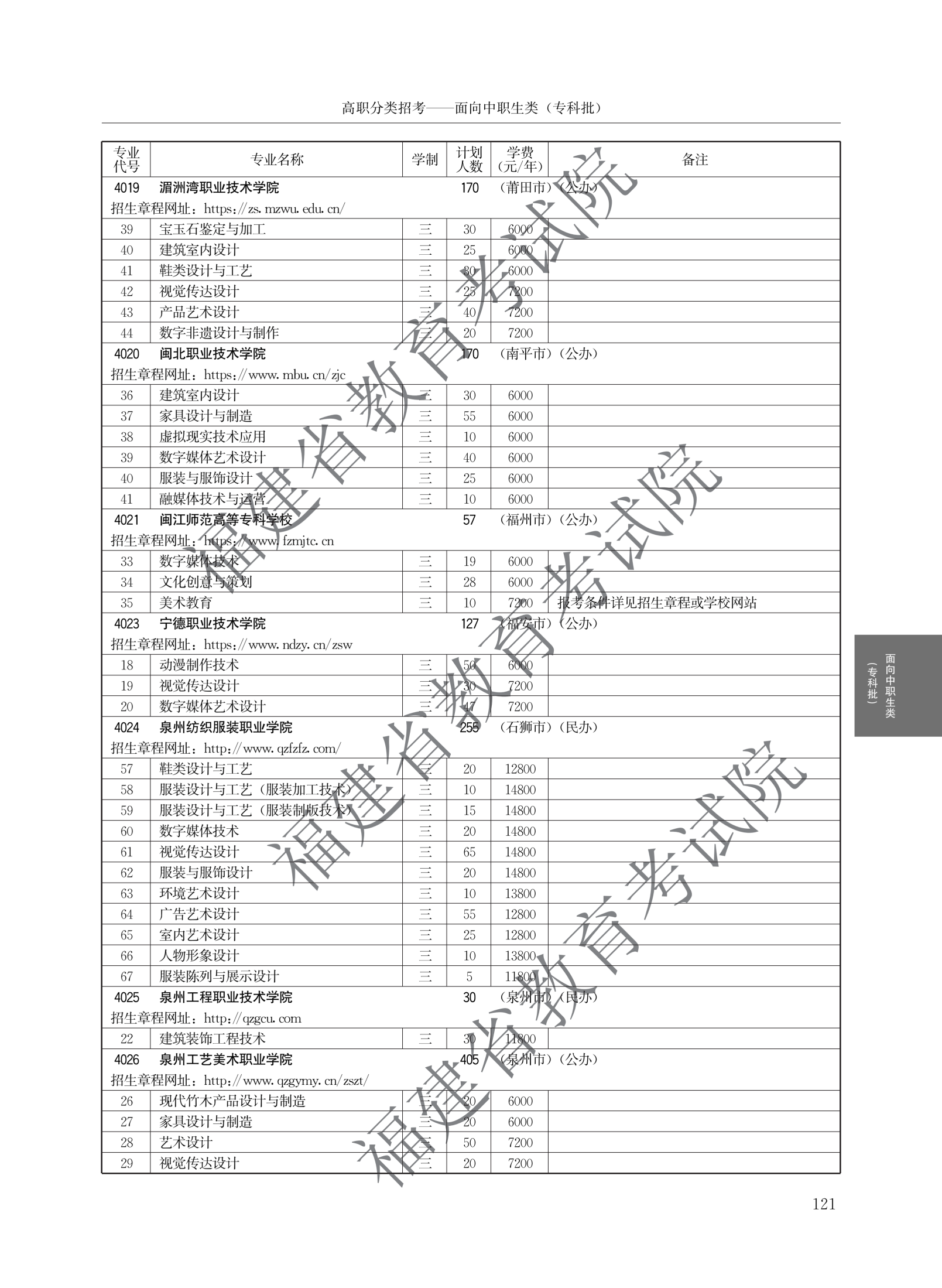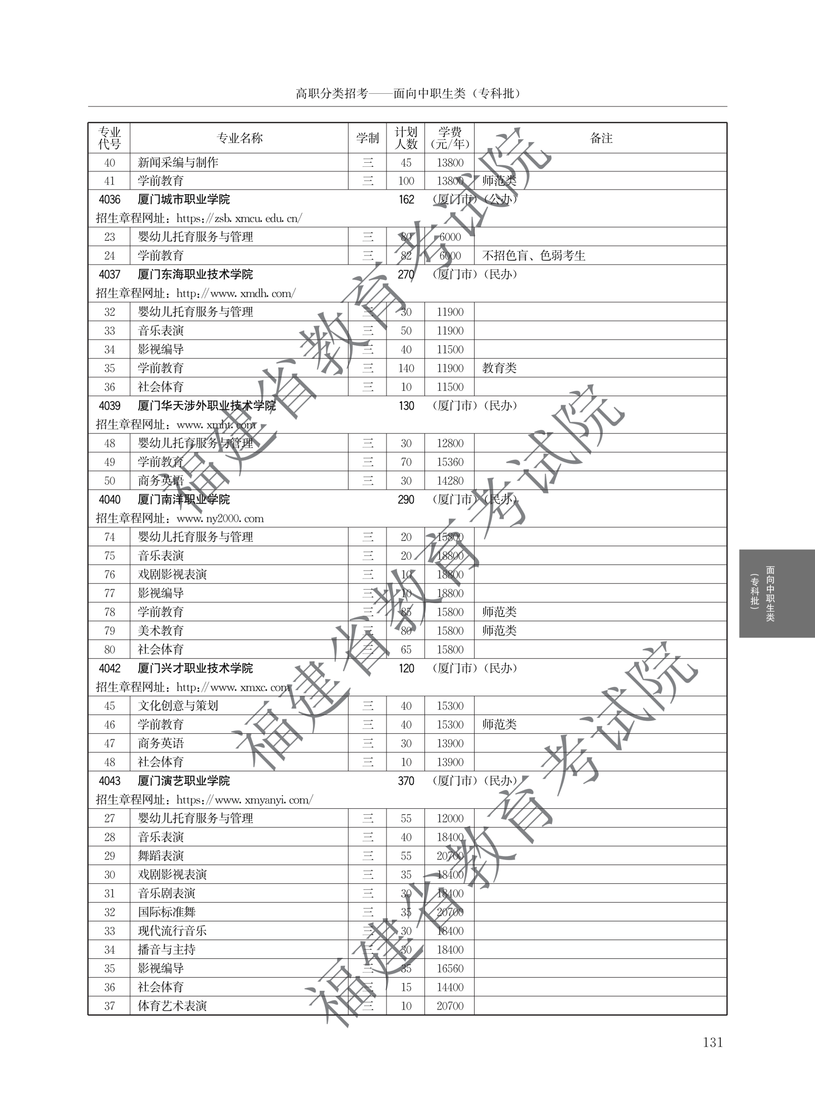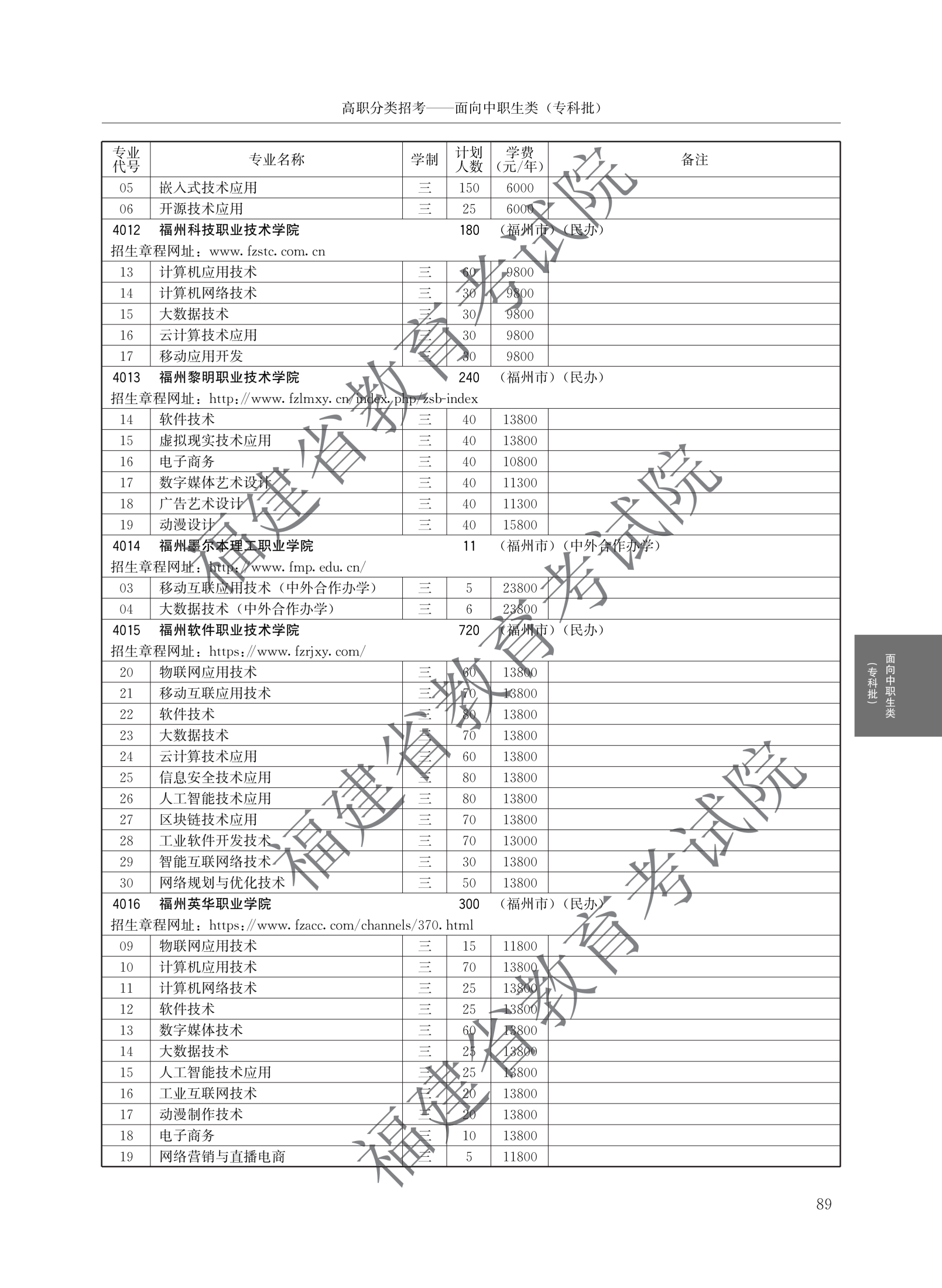 福建高职分类招生计划