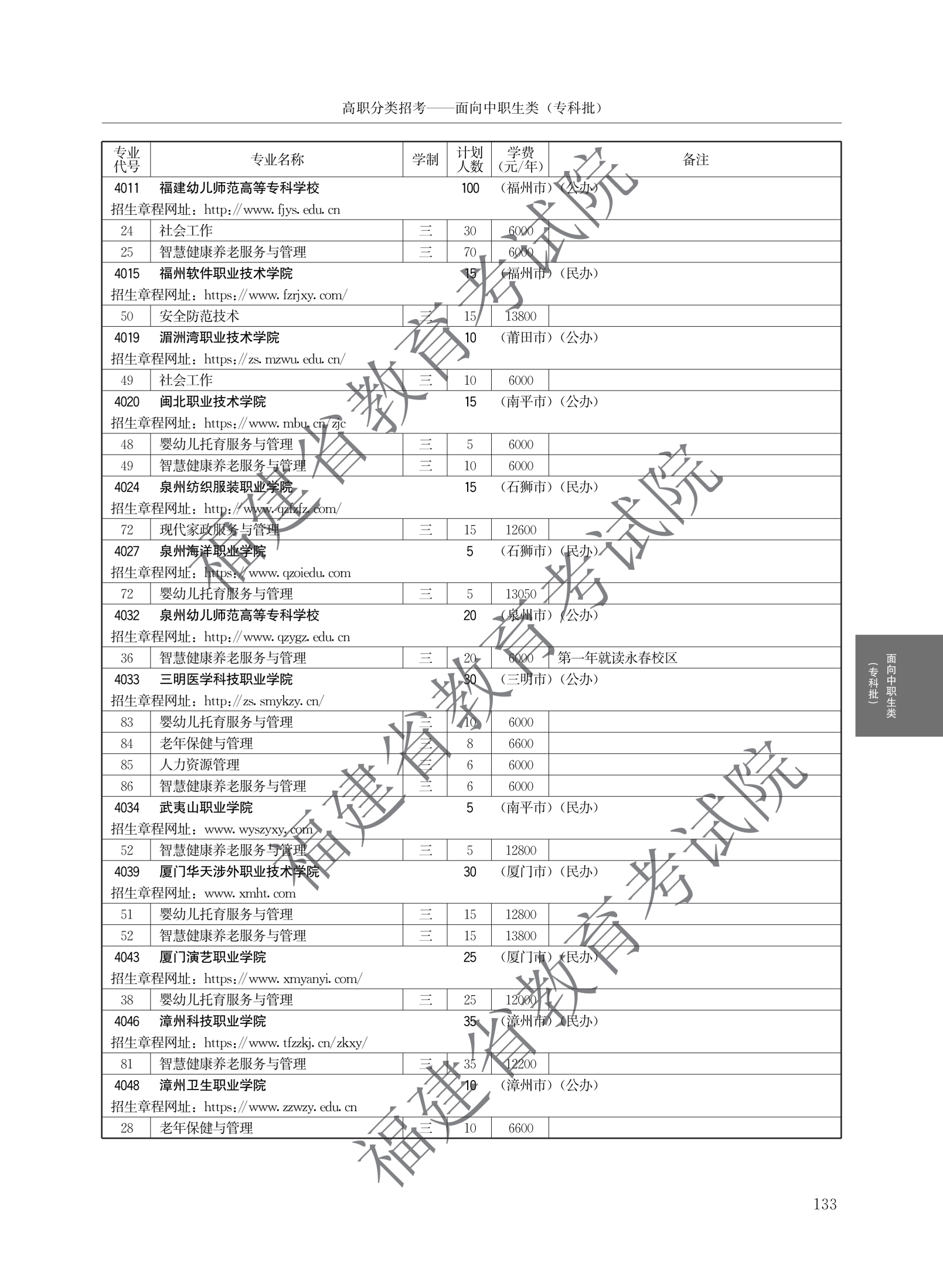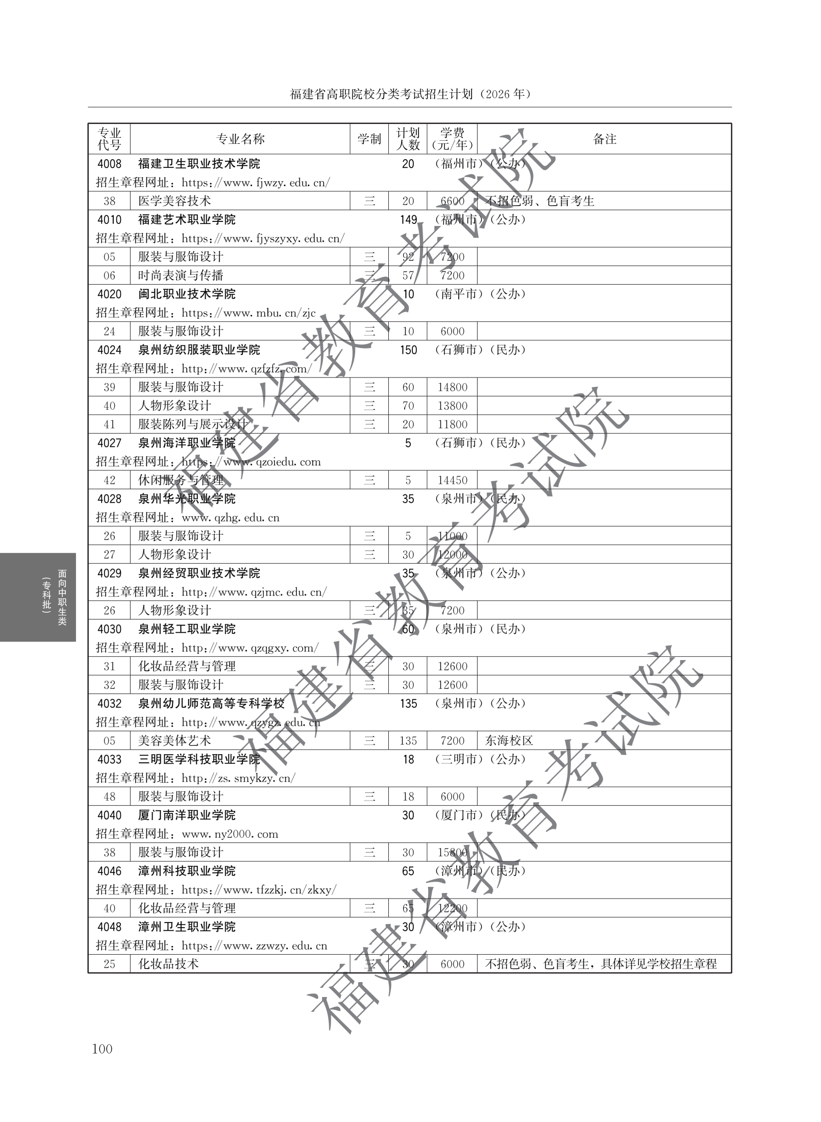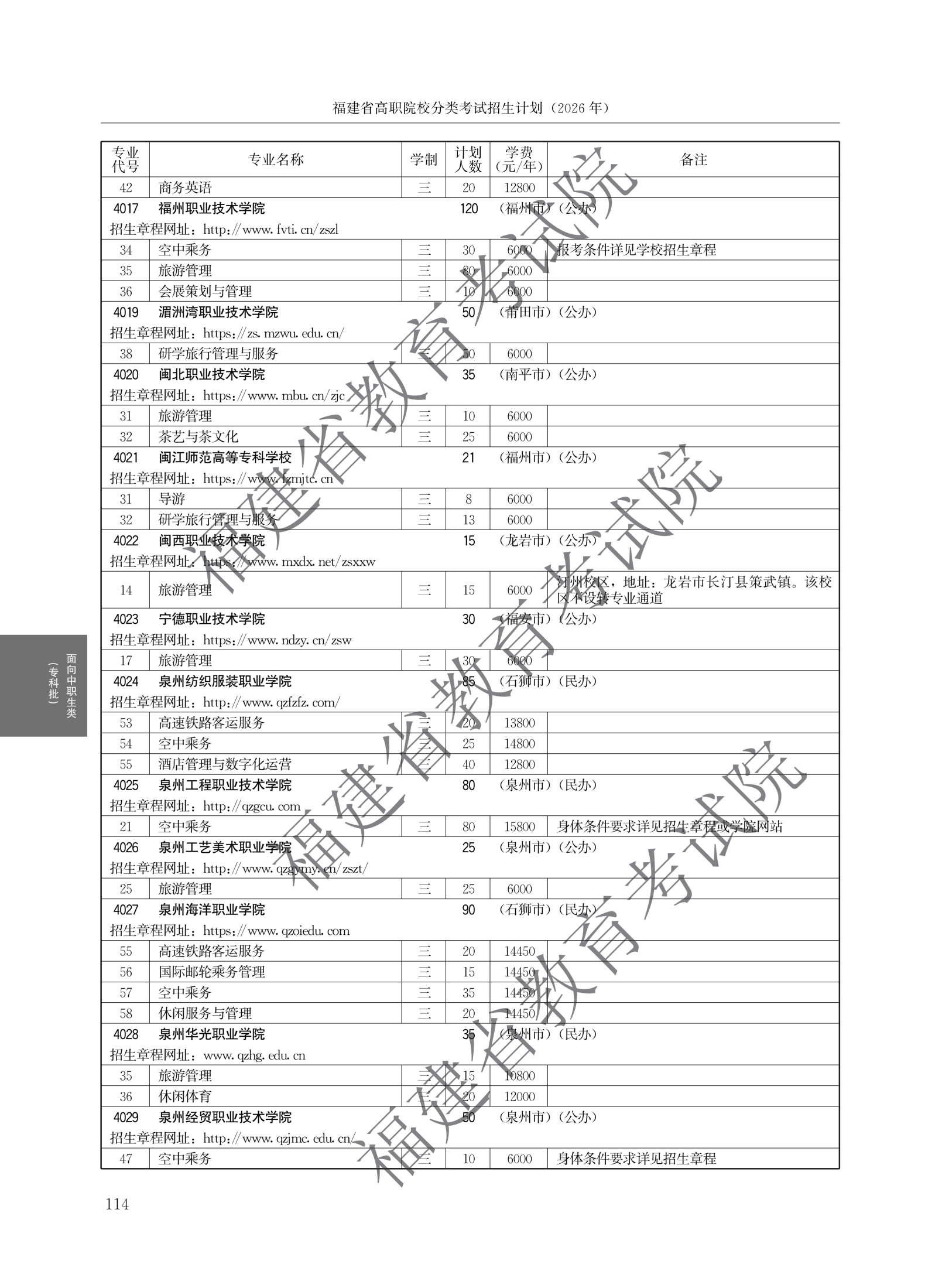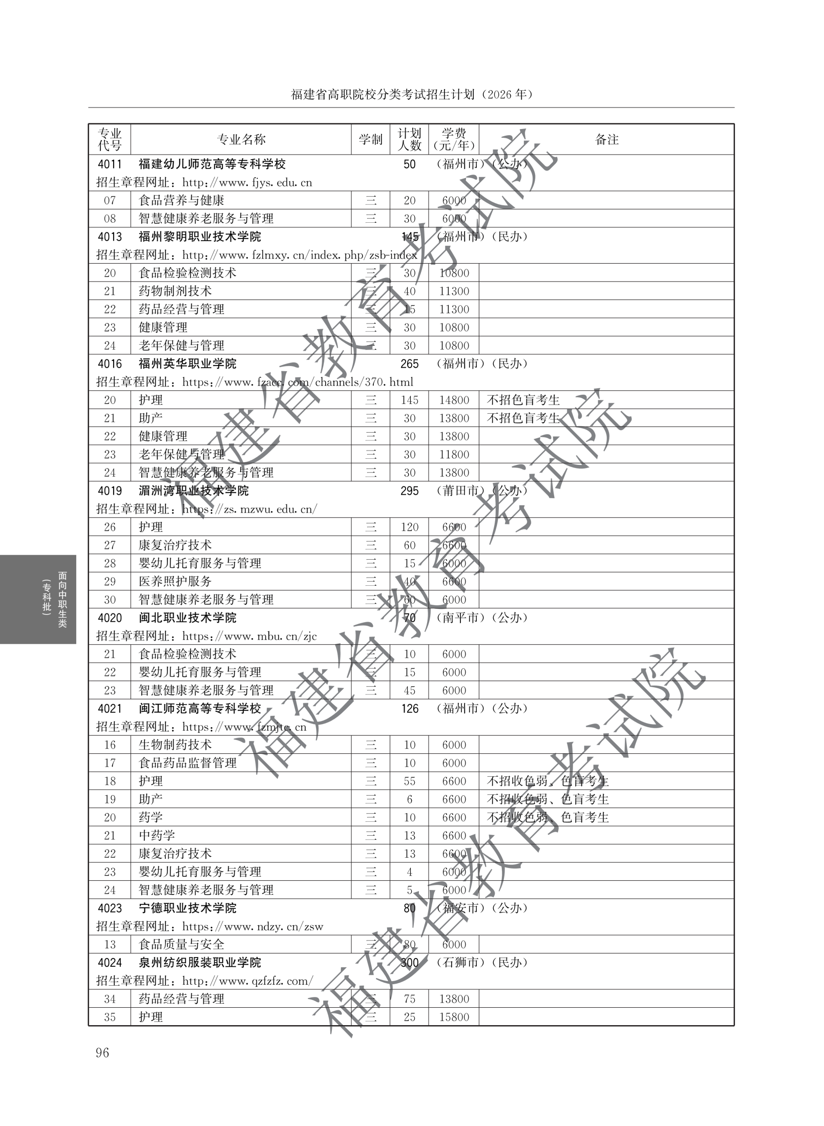 > 2026福建高职院校分类考试招生计划面向中职生类(专科批)