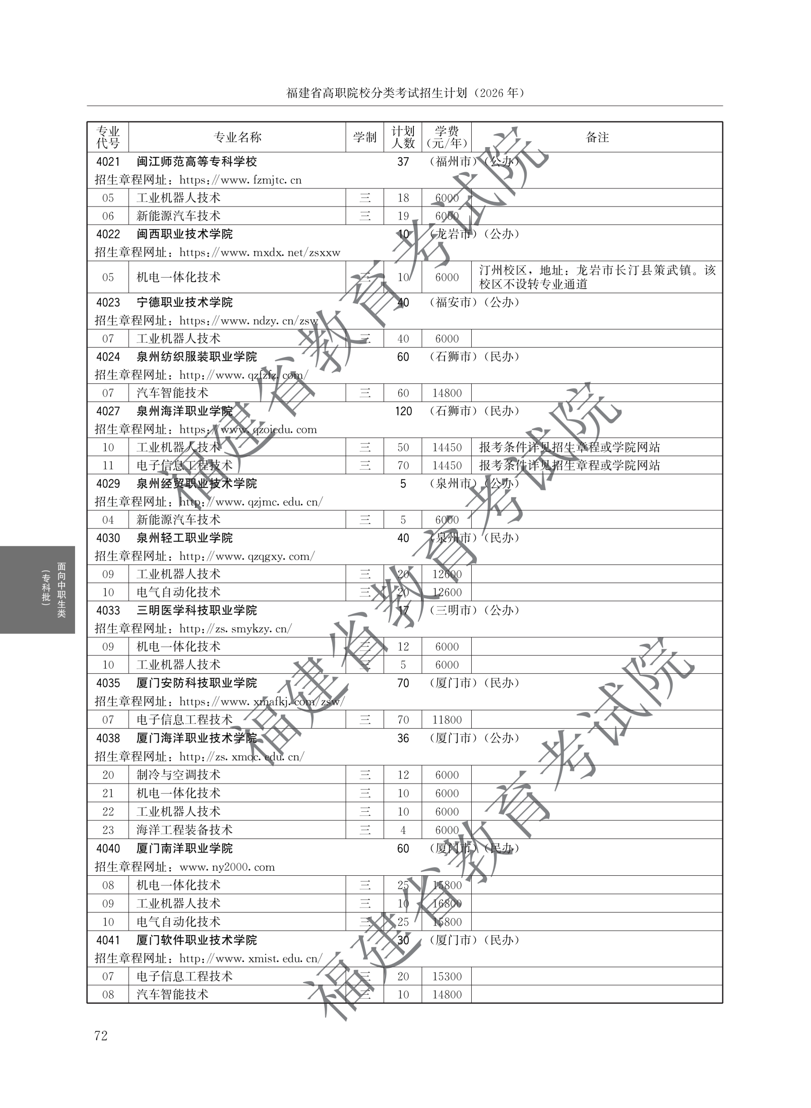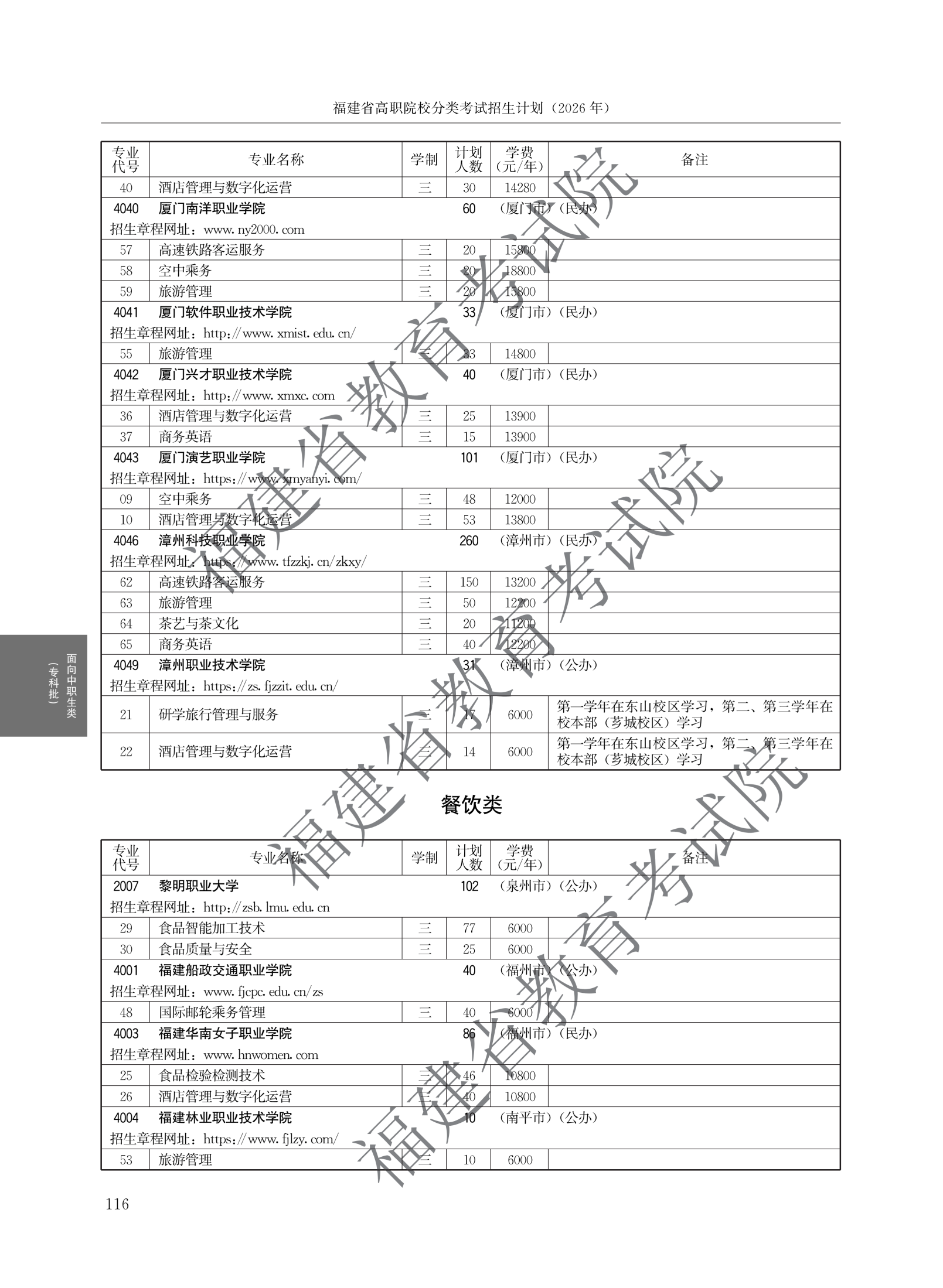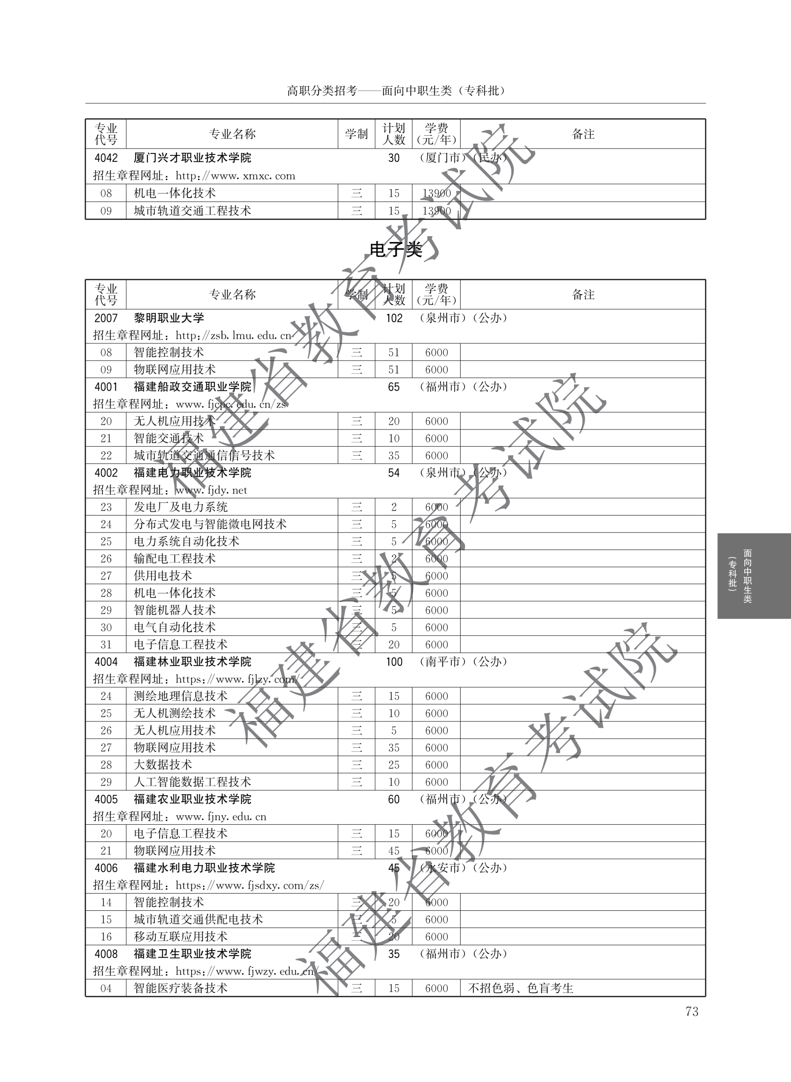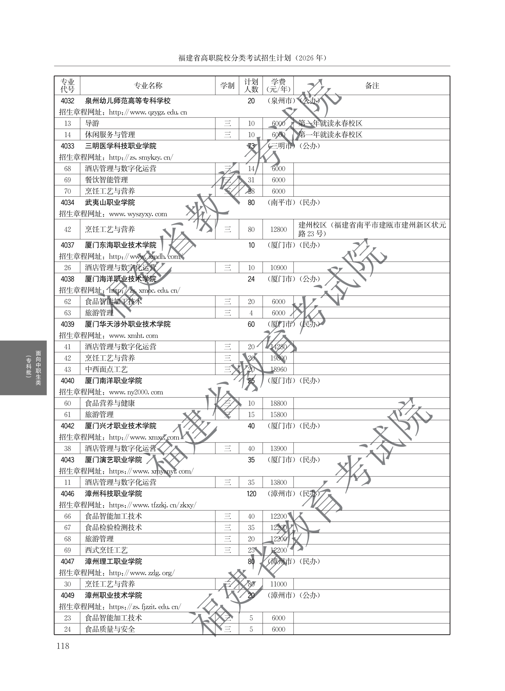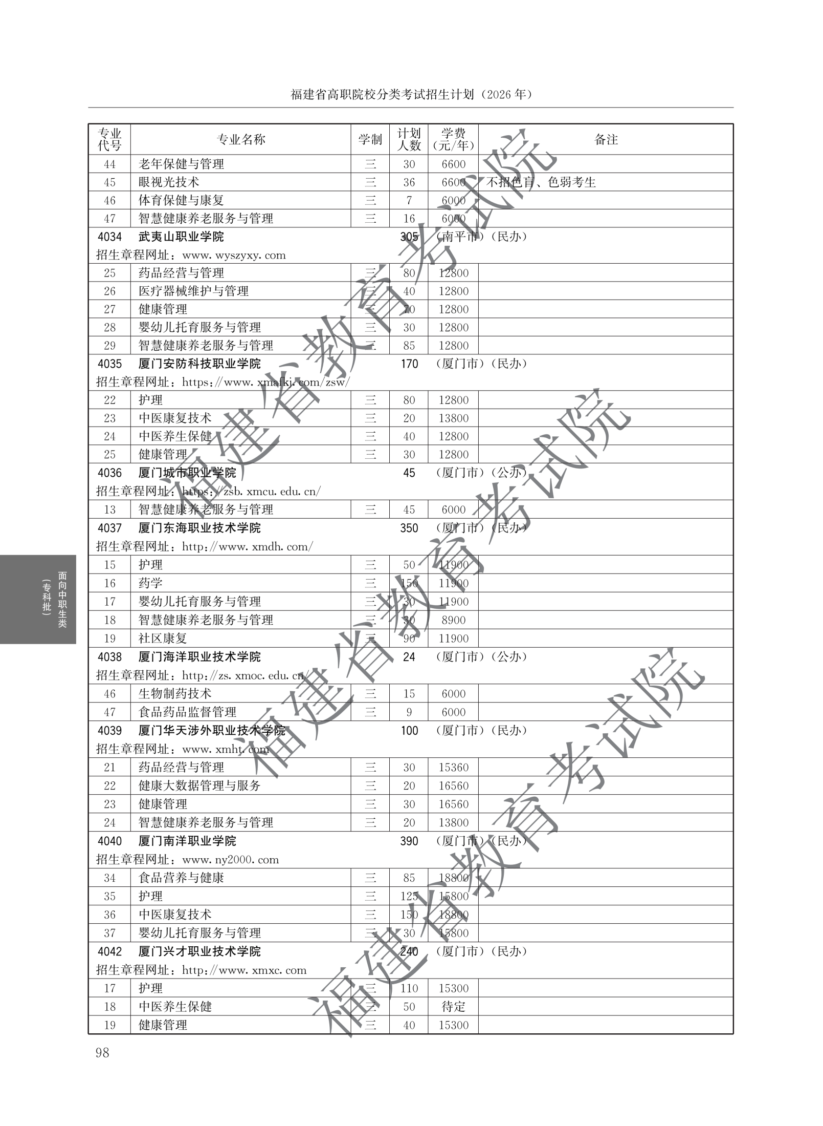 > 2026福建高职院校分类考试招生计划面向中职生类(专科批)