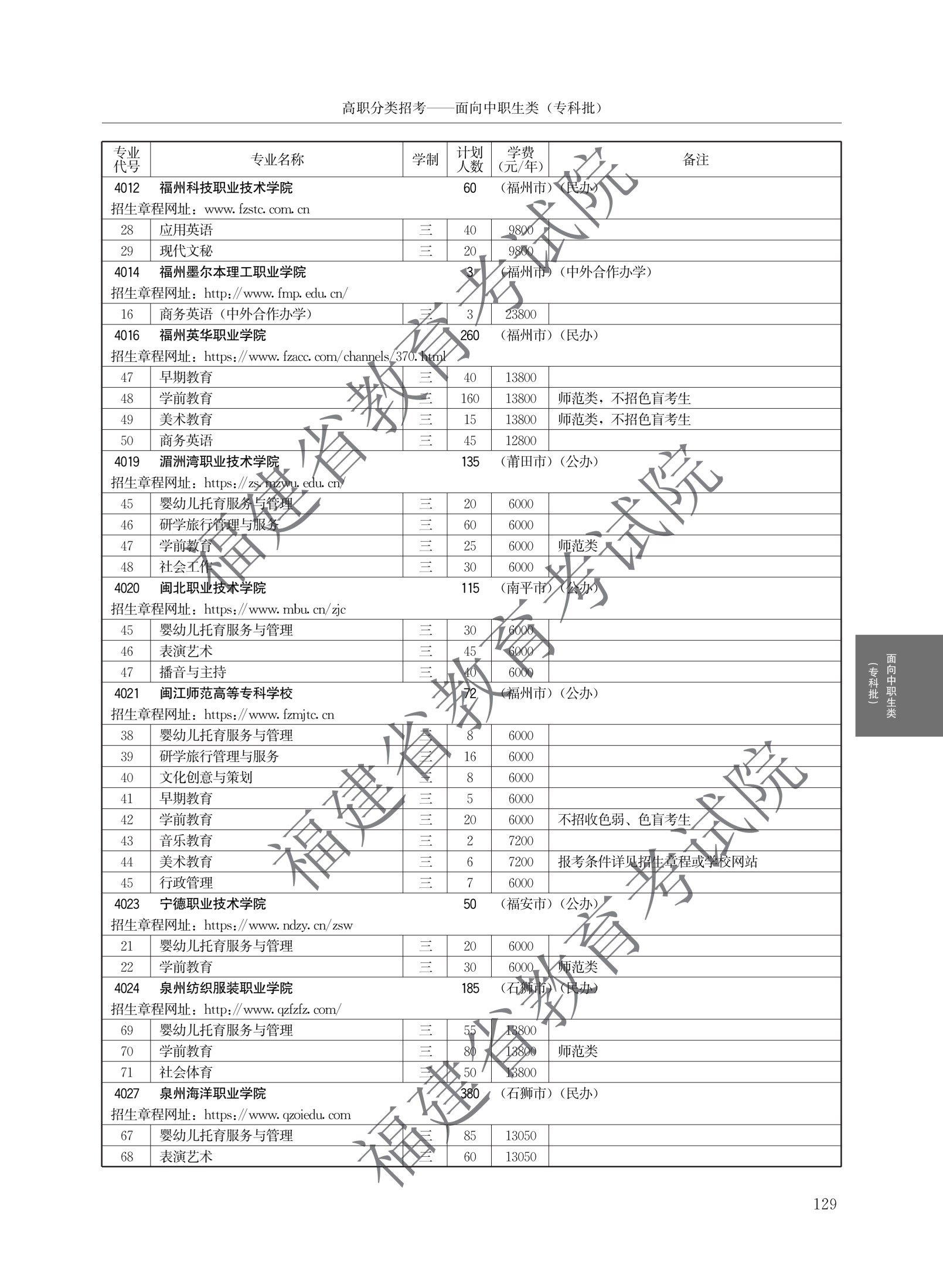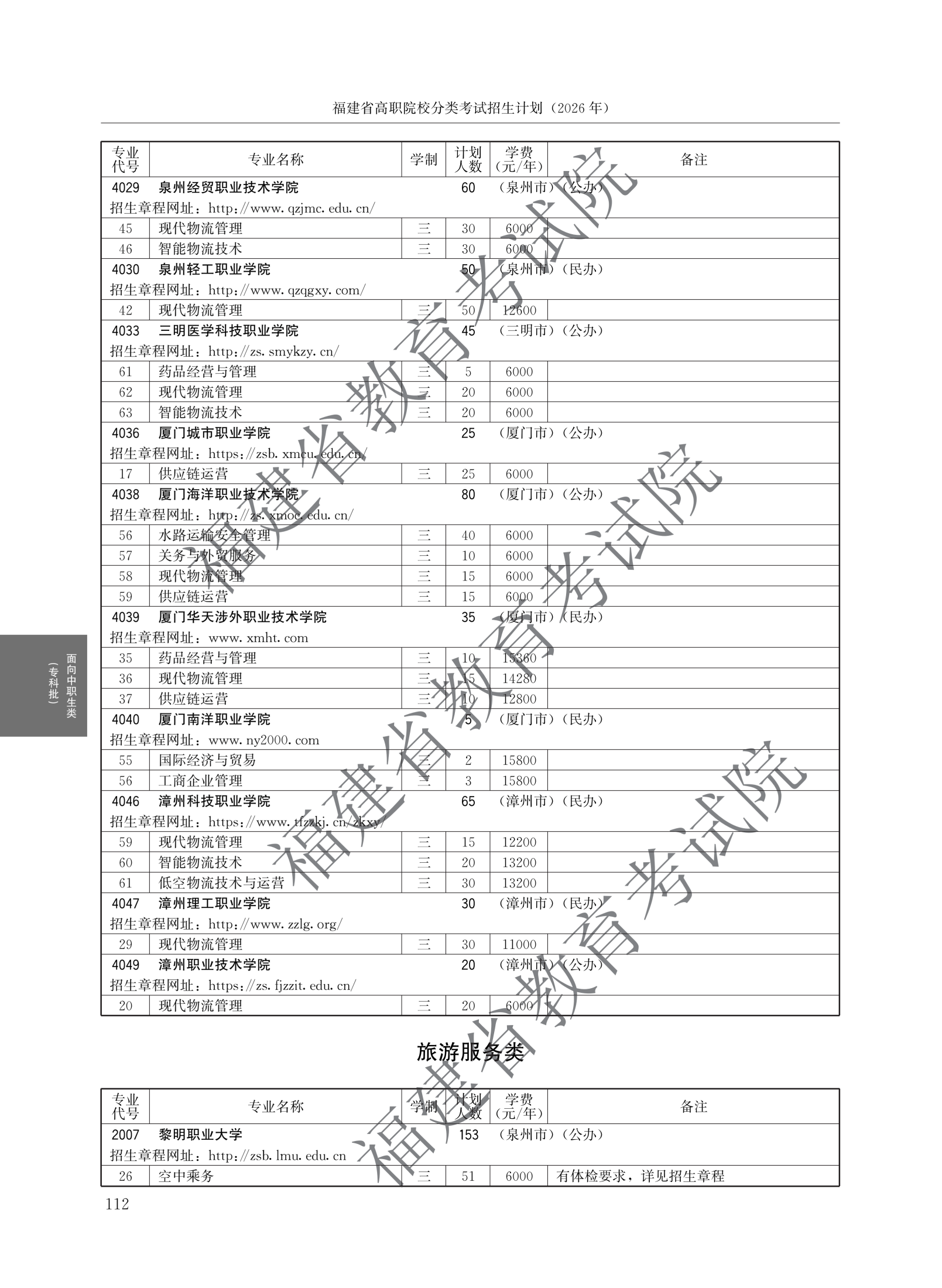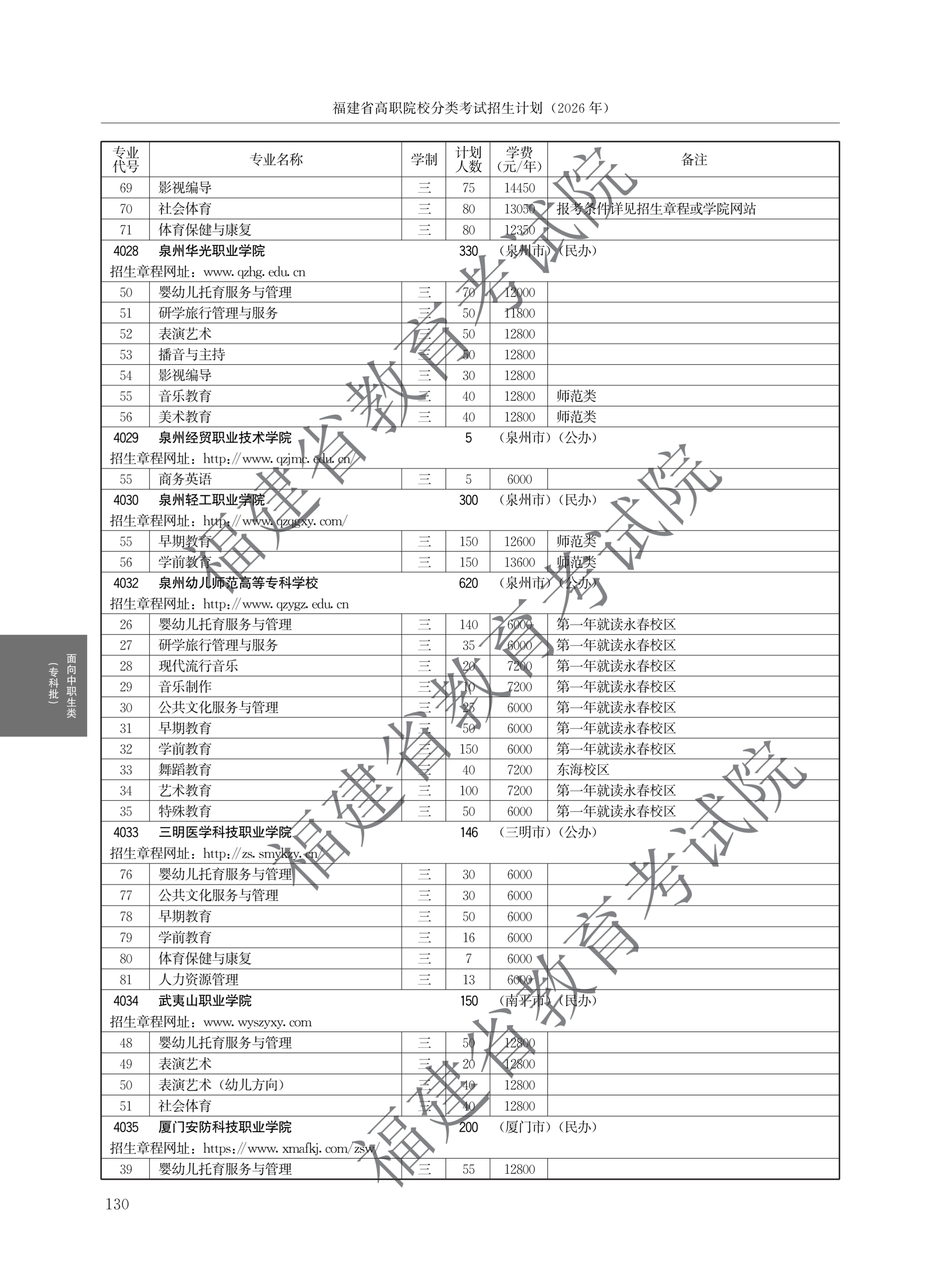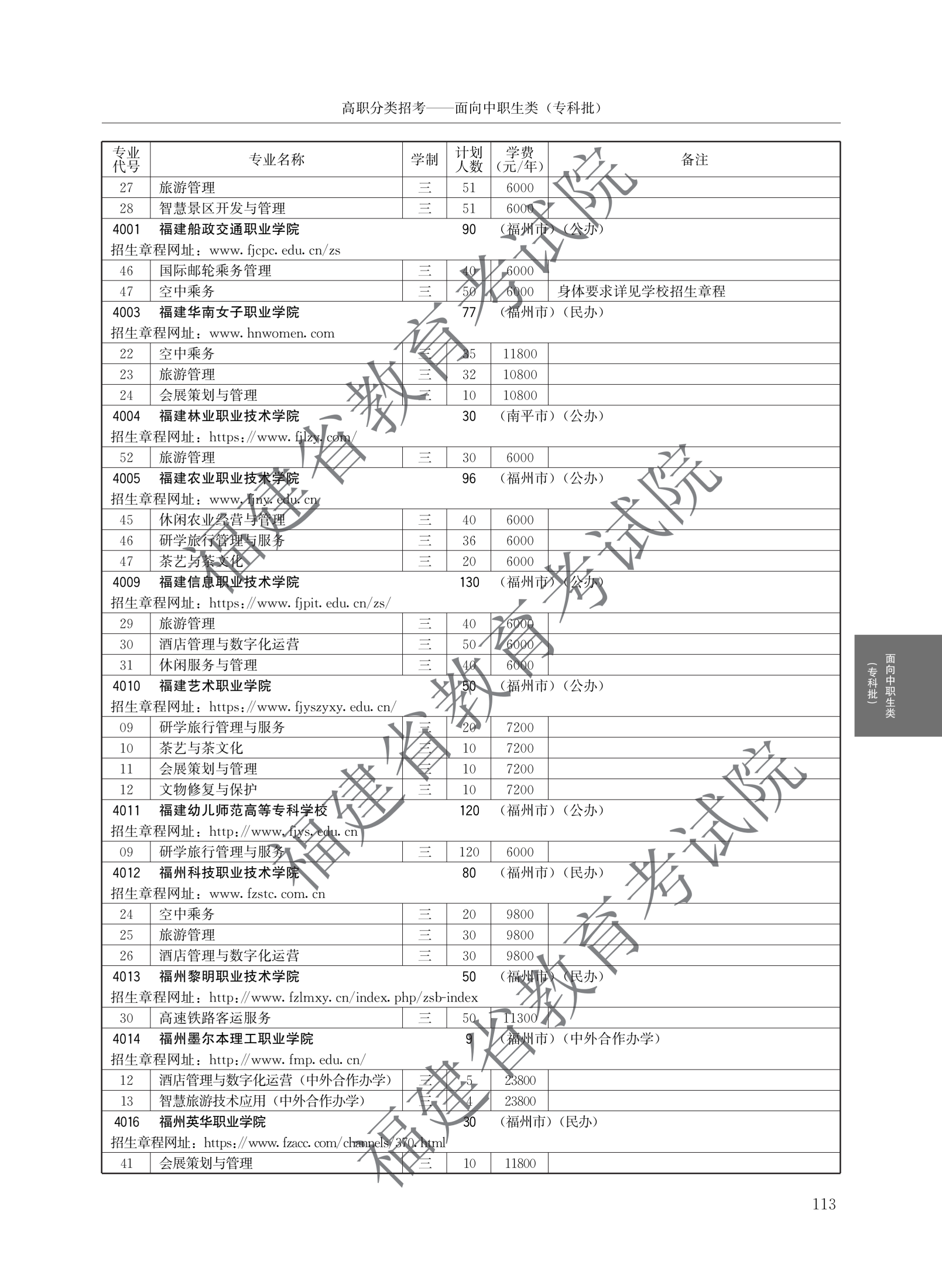 > 2026福建高职院校分类考试招生计划面向中职生类(专科批)
