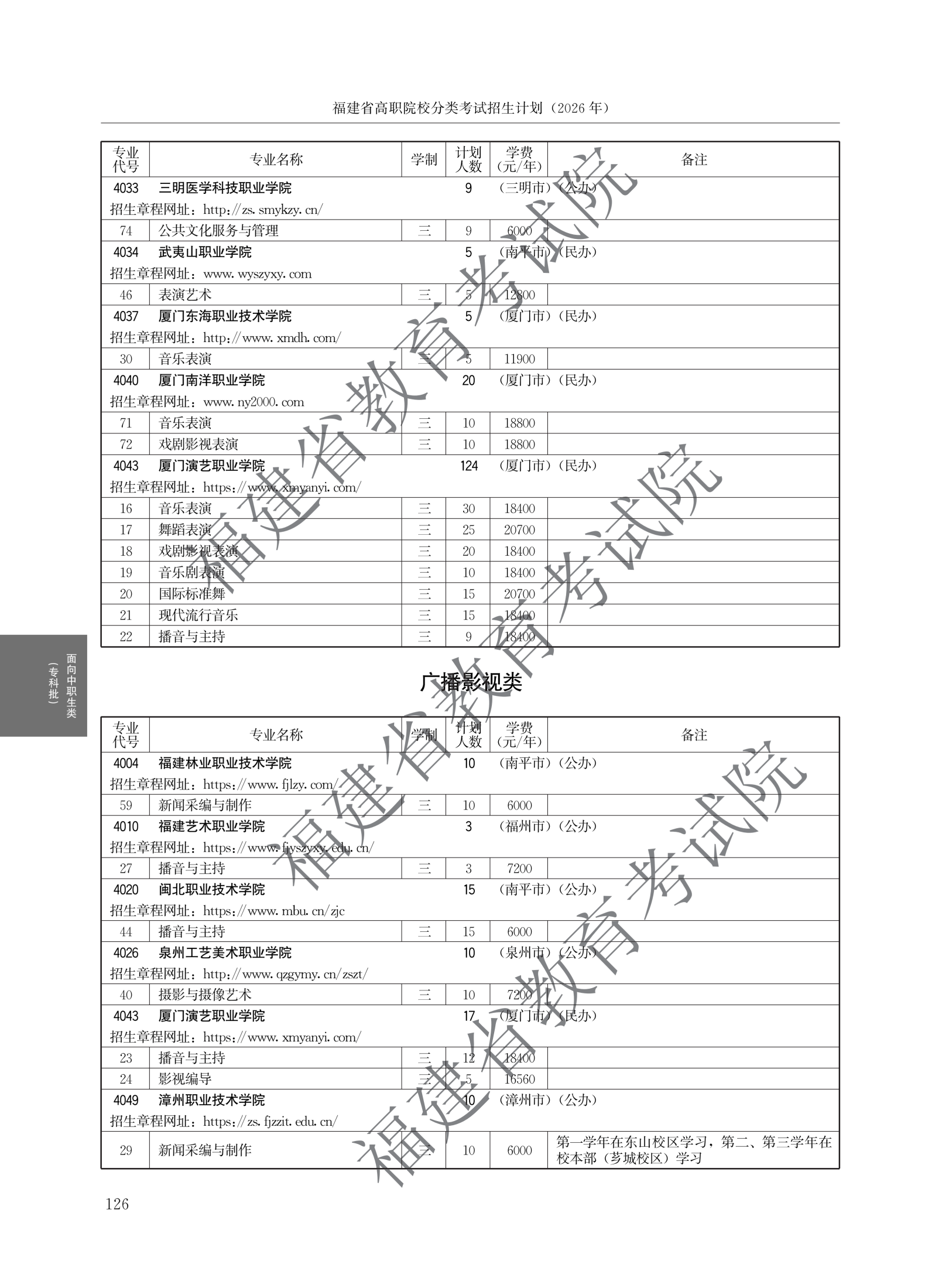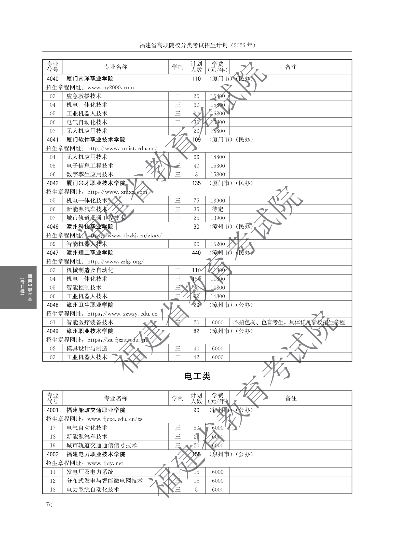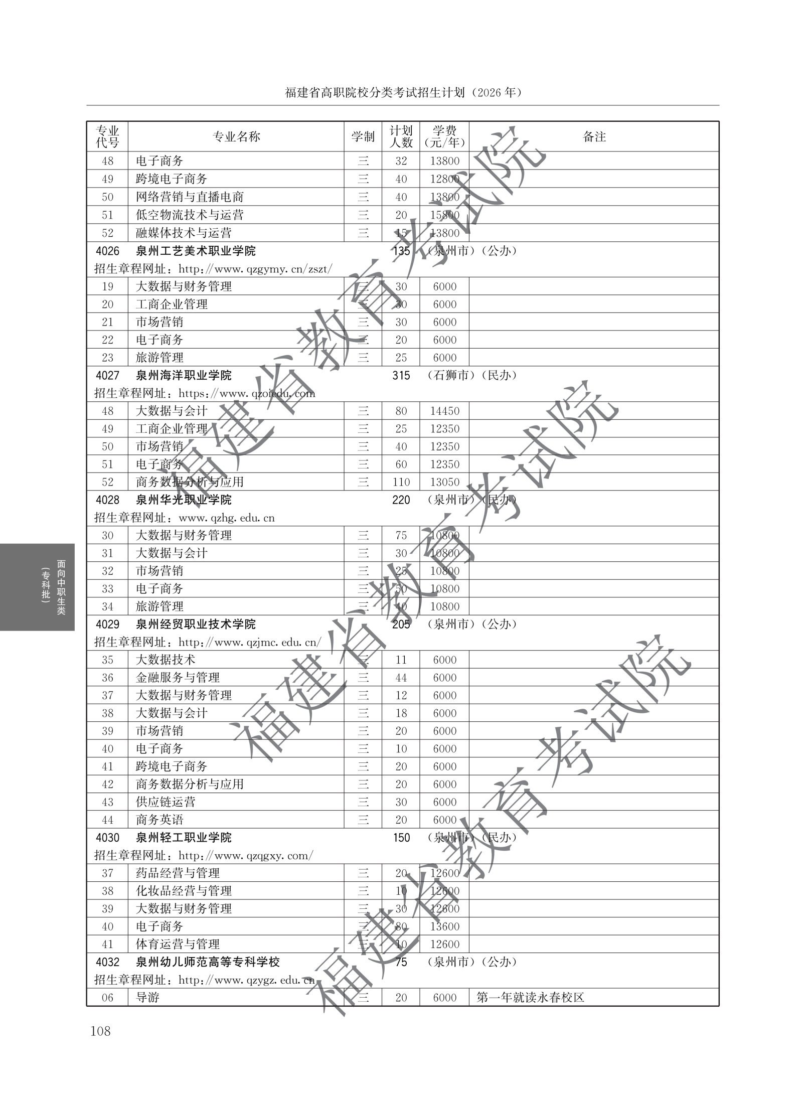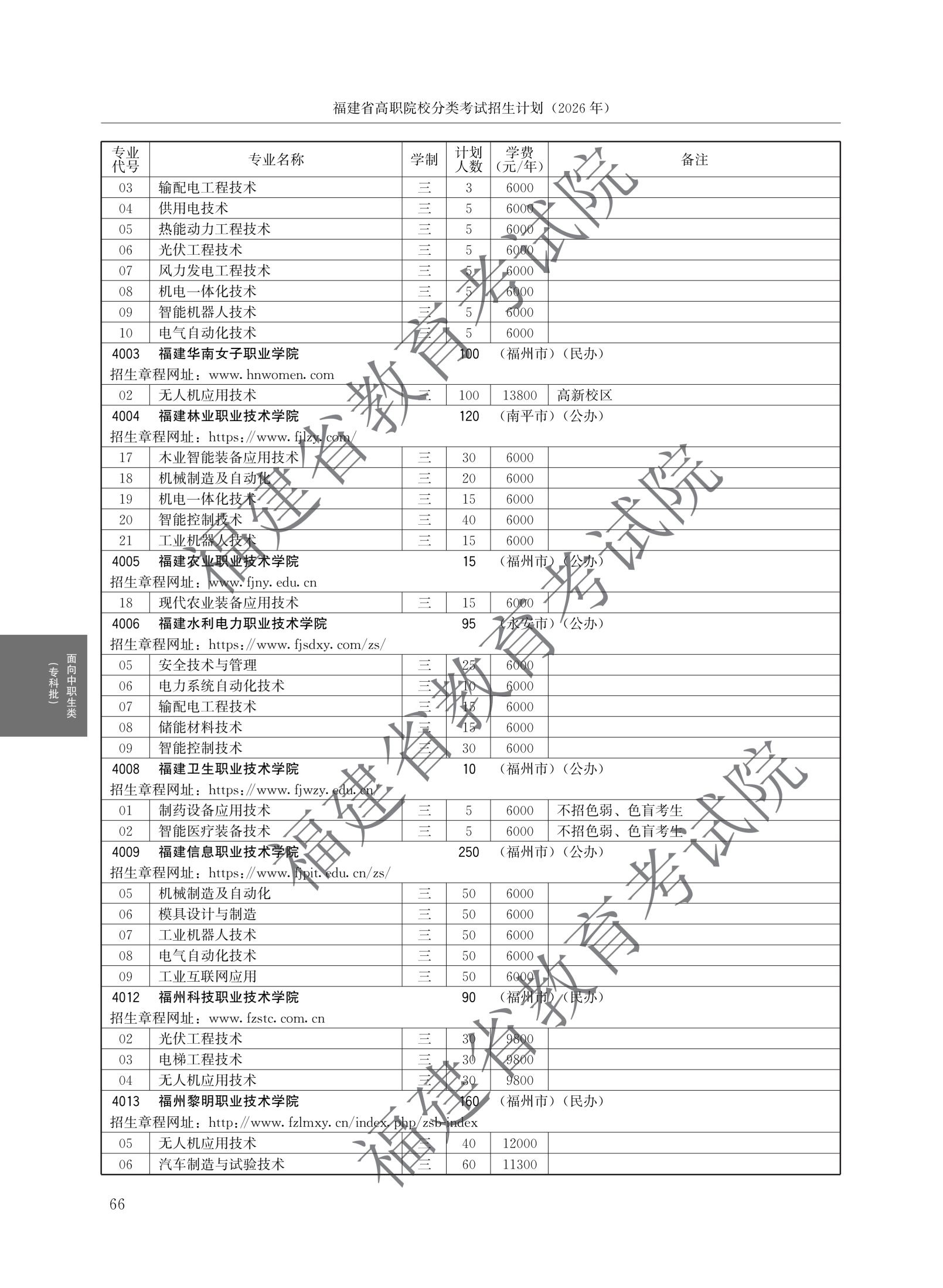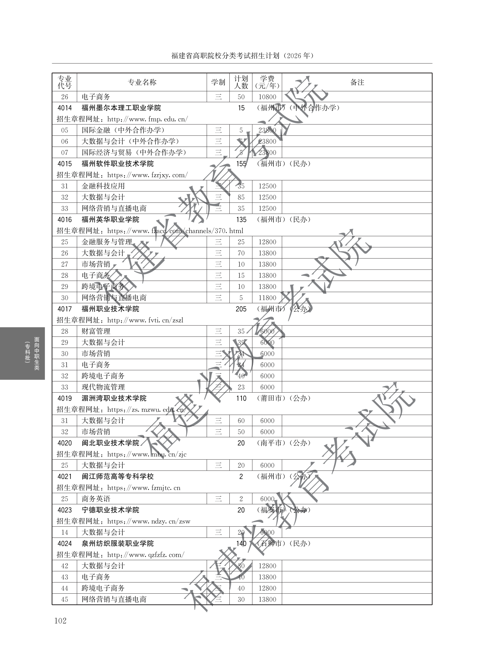 > 2026福建高职院校分类考试招生计划面向中职生类(专科批)