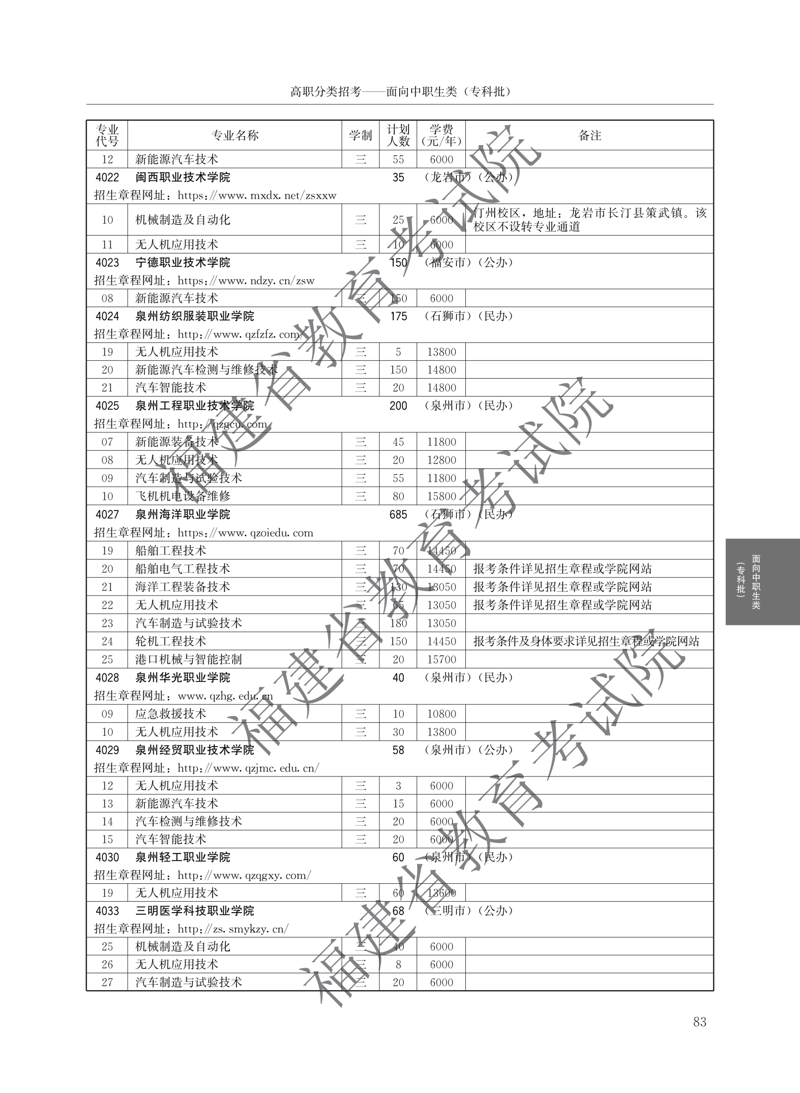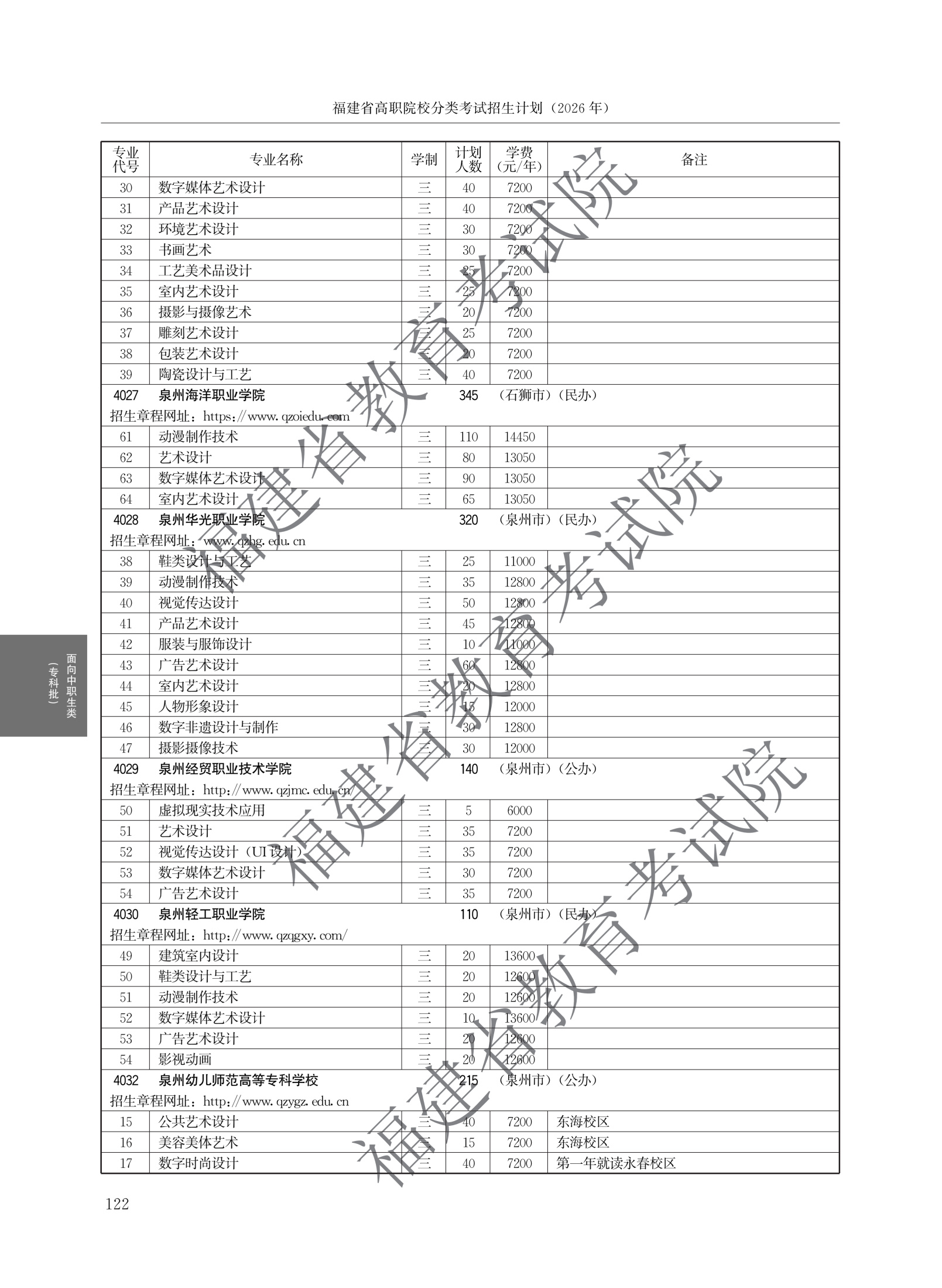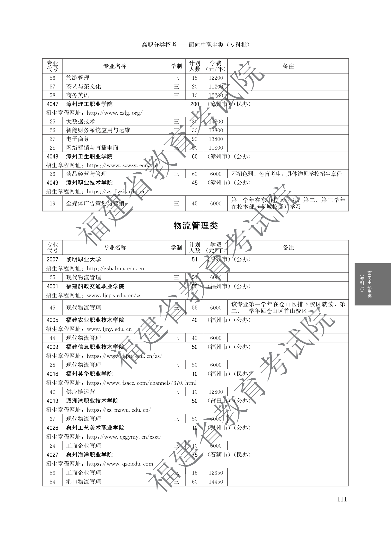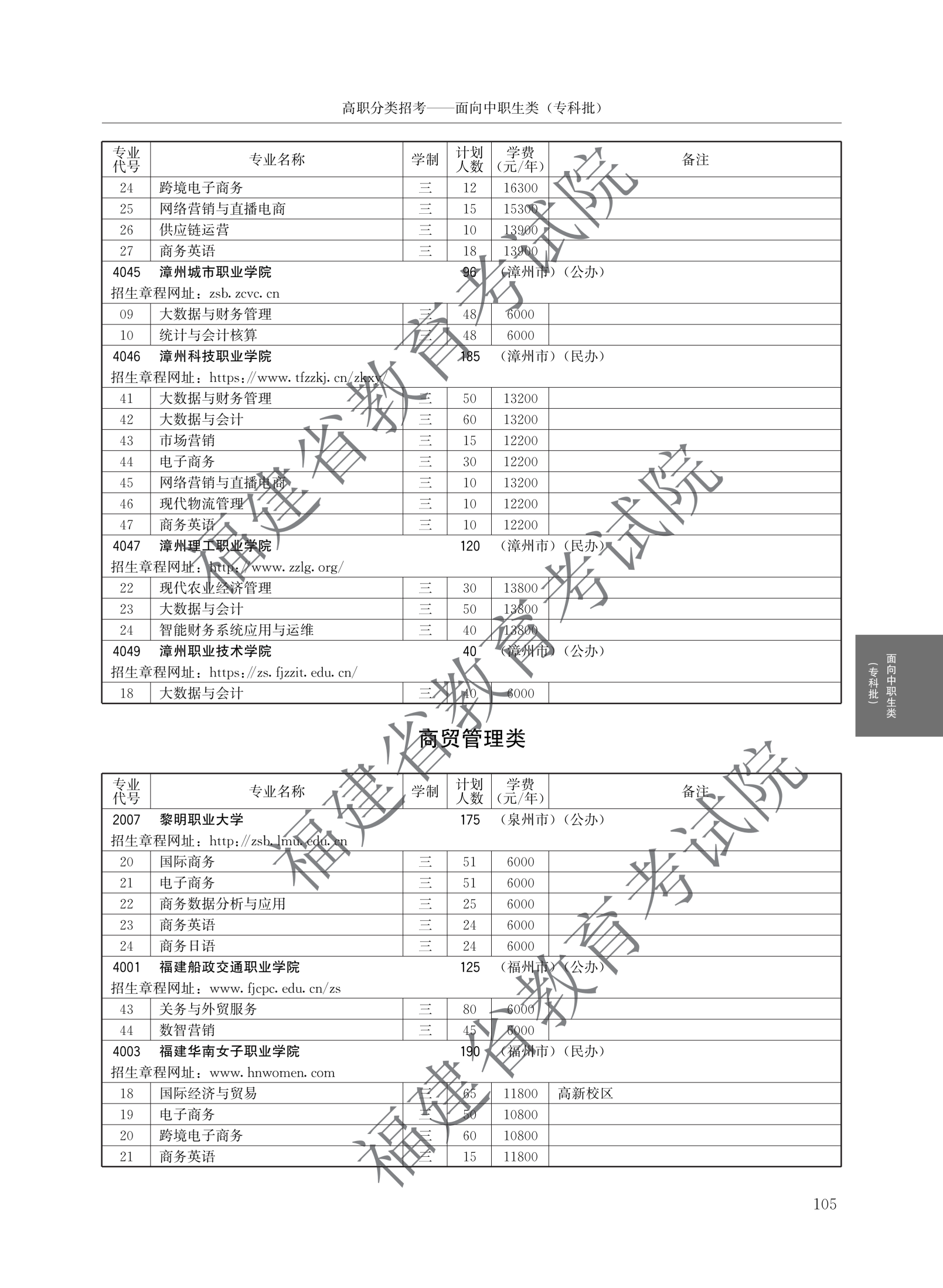 > 2026福建高职院校分类考试招生计划面向中职生类(专科批)