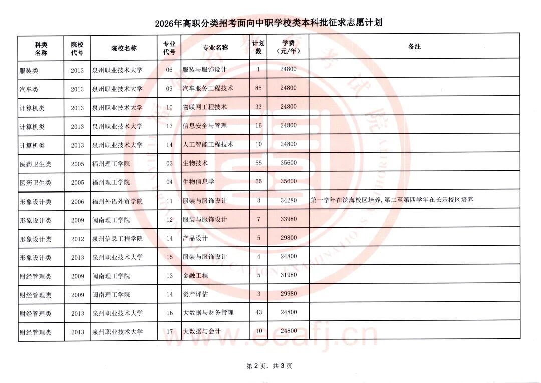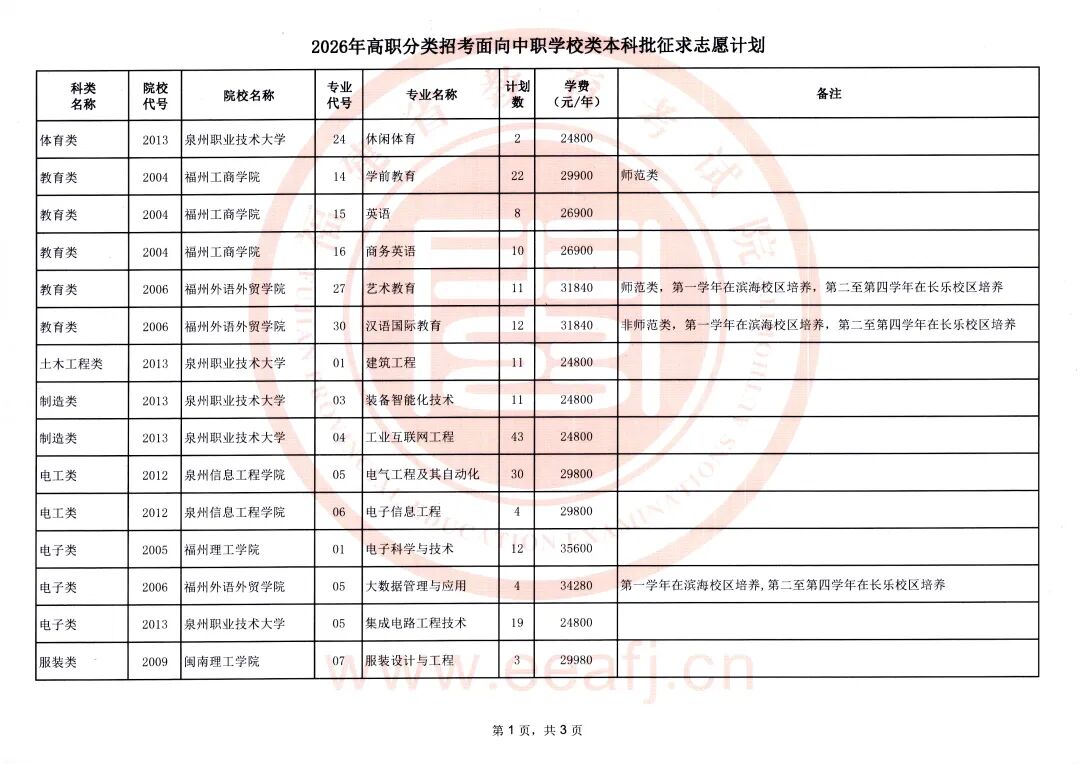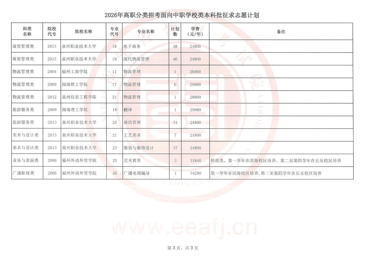 今年福建省高职分类招考面向中职学校类本科批仍有缺额计划须进行征求志愿(具体附后)。请考生在填报征求志愿时注意以下事项: