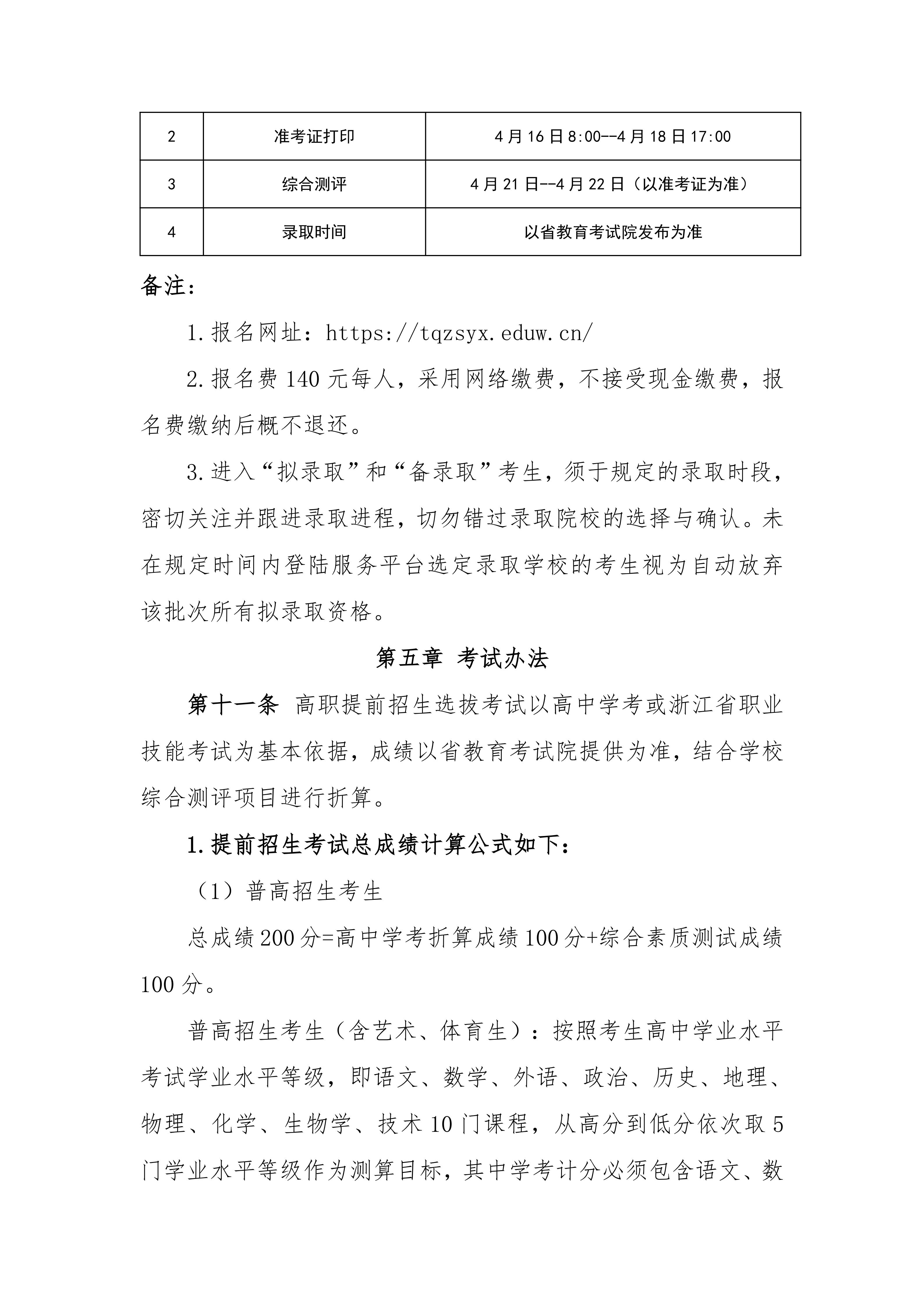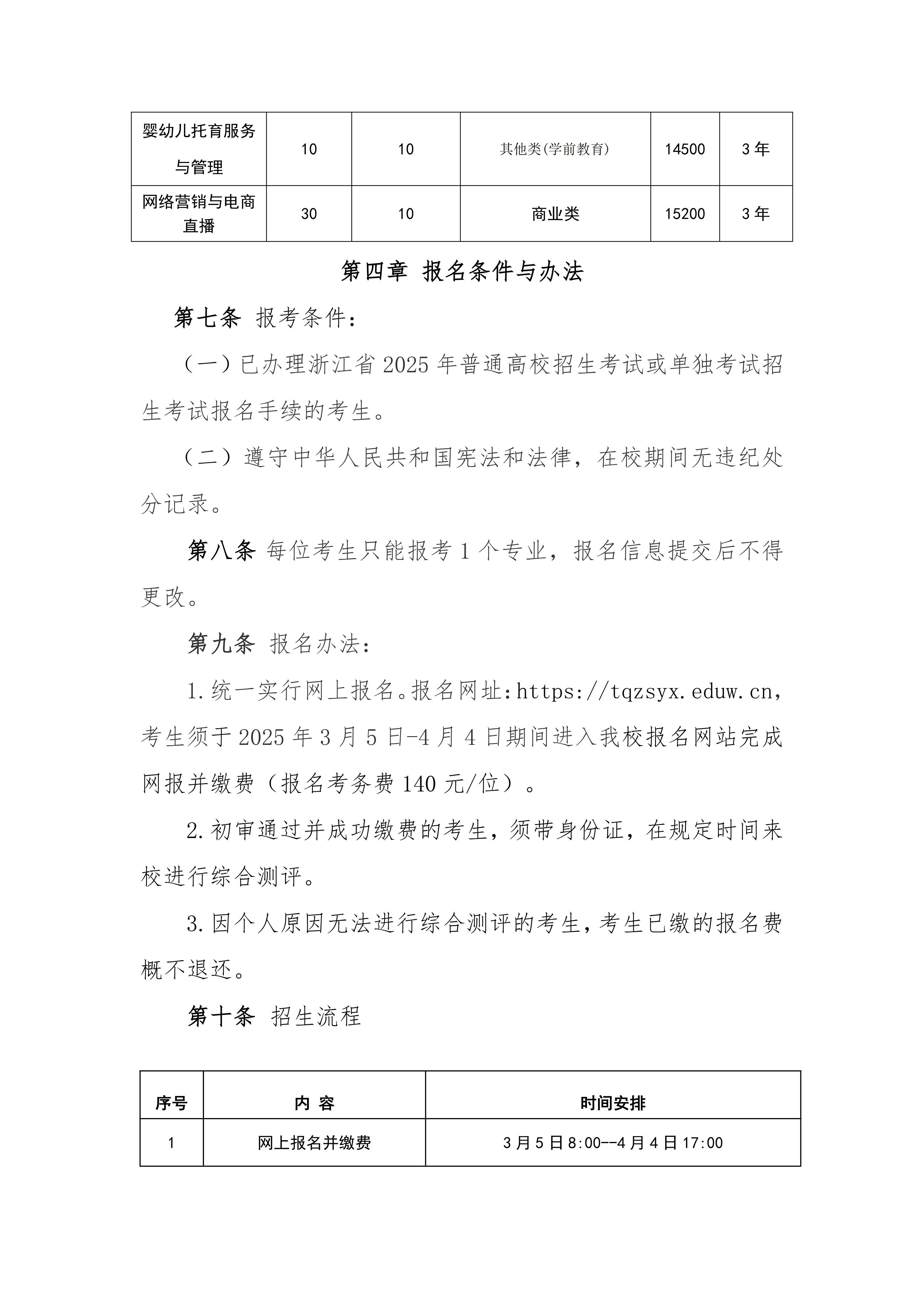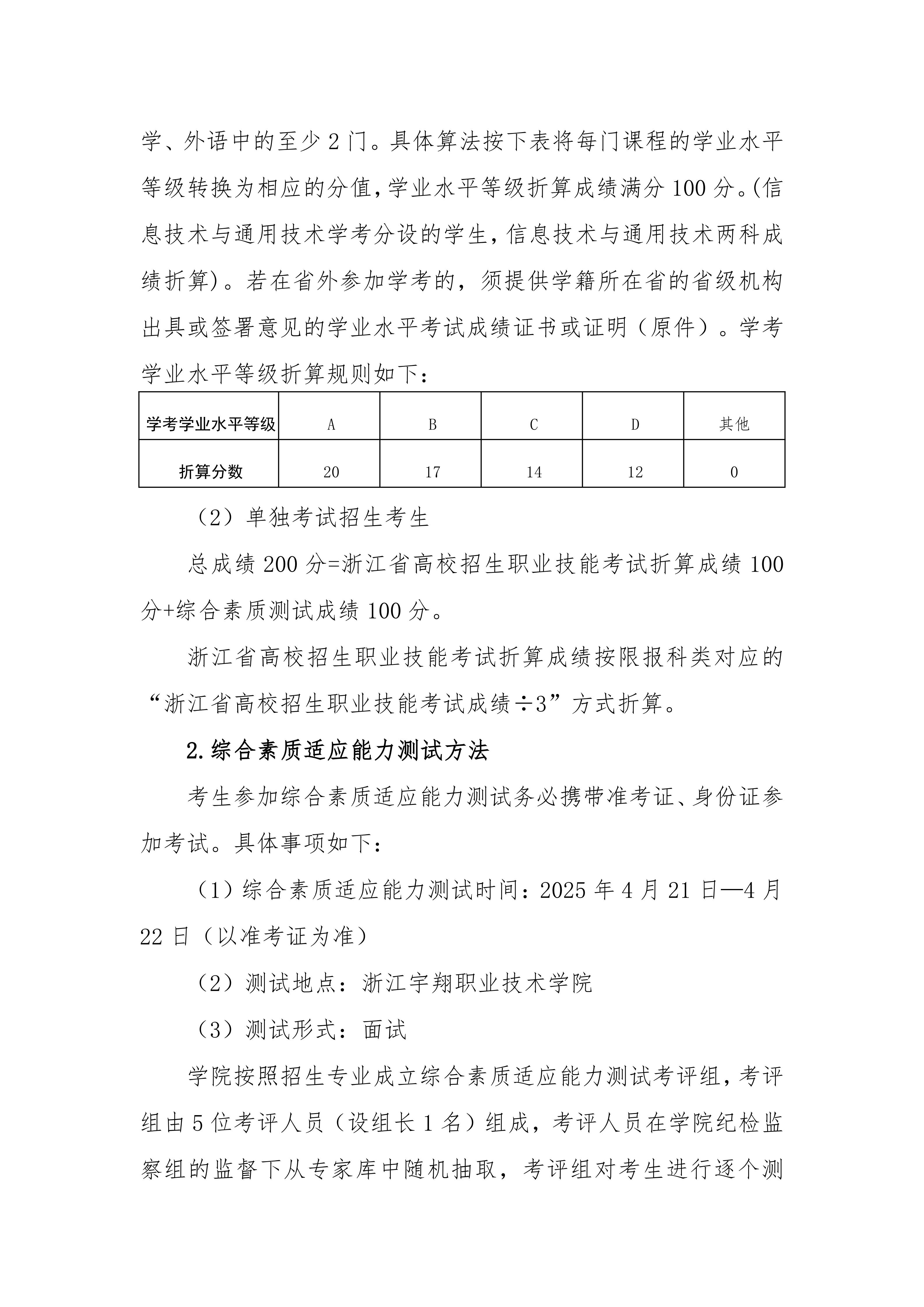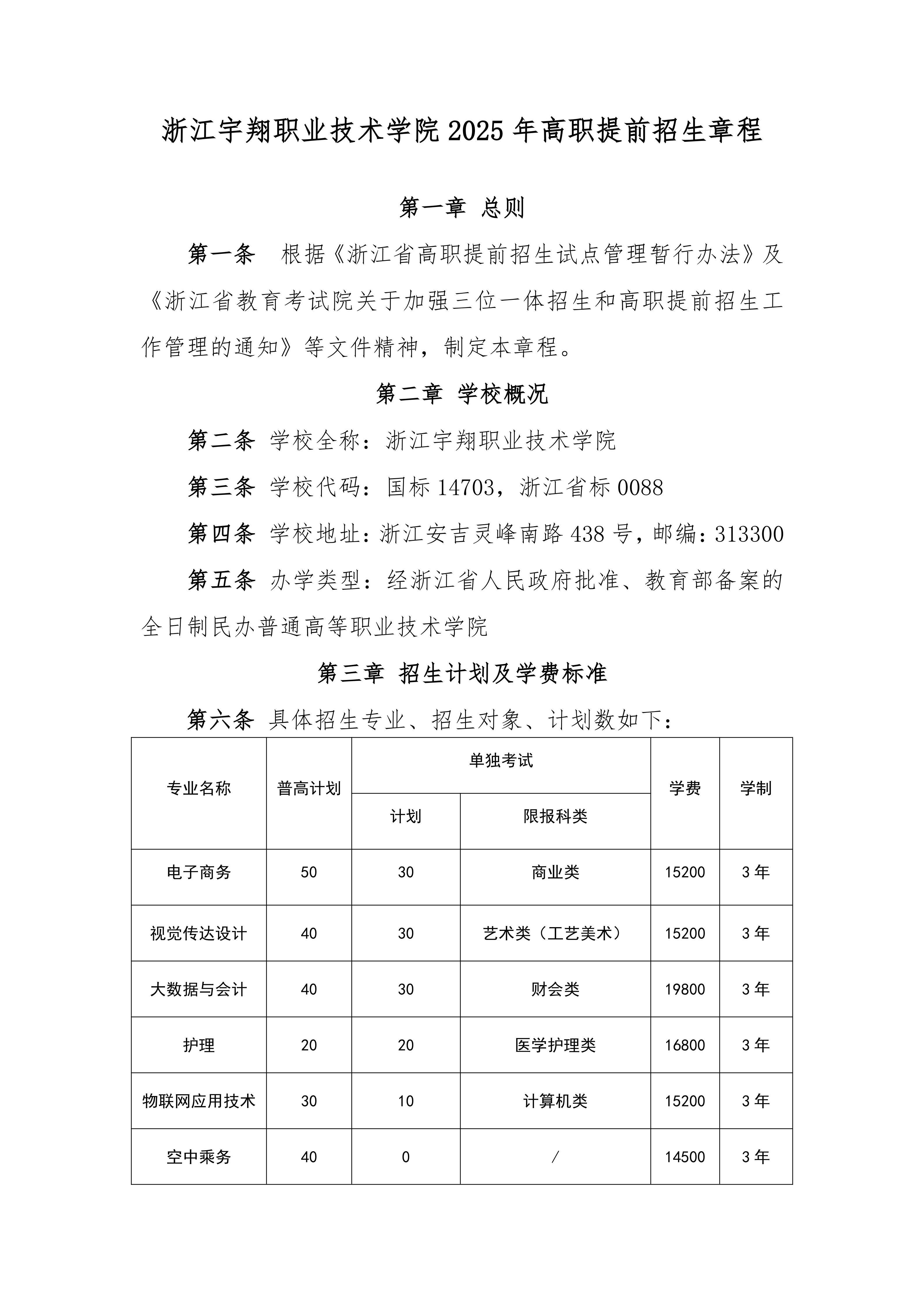 浙江宇翔职业技术学院2025年高职提前招生章程