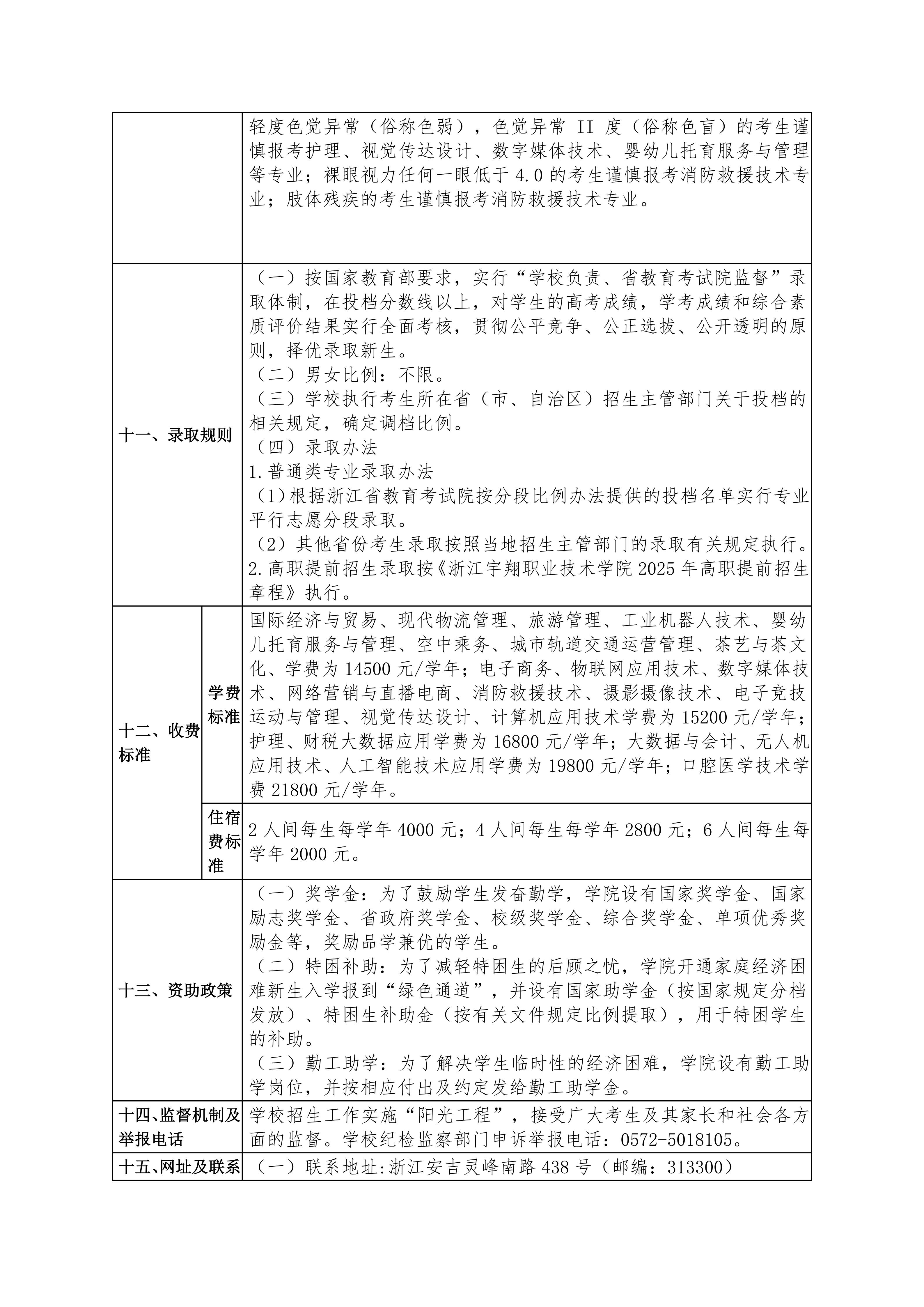 浙江宇翔职业技术学院2025年高职提前招生章程